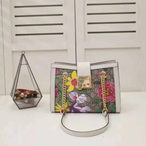 Gucci GG Women Padlock GG Flora Small Shoulder Bag in Beige/Ebony GG Supreme Canvas