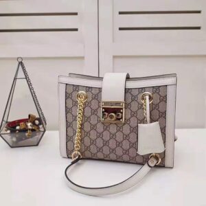Gucci GG Women Padlock Mini Bag GG Supreme Canvas with White Leather
