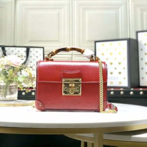 Gucci GG Women Padlock Small Bamboo Shoulder Bag Textured Leather