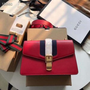 Gucci Women Sylvie Small Shoulder Bag Web Hibiscus Red Leather