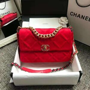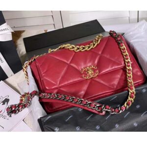 Chanel Women Chanel 19 Large Flap Bag Goatskin Leather-Red