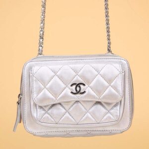 Chanel Women Messenger Bag with Chain in Calfskin Leather-Silver