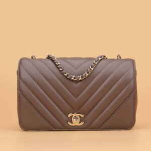 Chanel Women Mini Flap Bag in Calfskin Leather-Grey