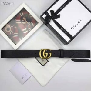 Gucci Women GG Leather Belt with Double G Buckle 4 cm Width-Black