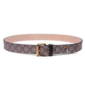 Gucci Unisex Tiger Print GG Supreme Belt in Beige/Ebony GG Supreme Canvas