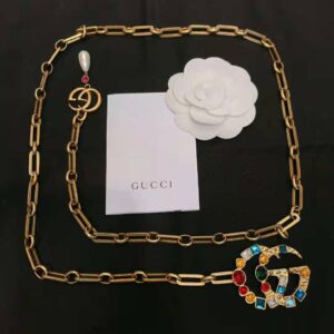 Gucci Women Chain Belt with Crystal Double G Buckle in Gold-Toned Chain