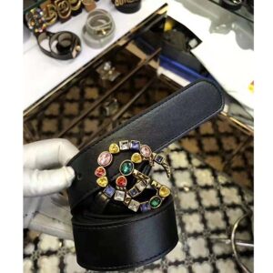 Gucci Women Leather Belt with Crystal Double G Buckle in Black