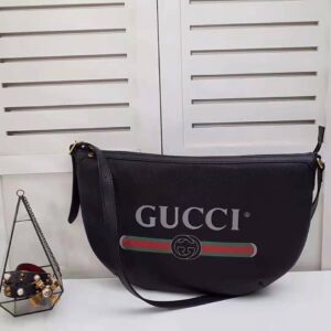 Gucci GG Unisex Gucci Print Half-Moon Hobo Bag in Leather with Gucci Vintage Logo