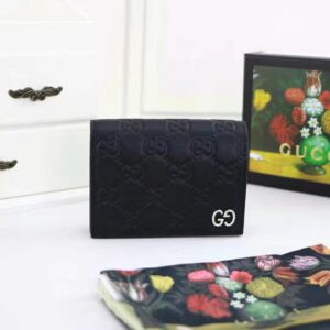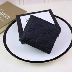 Gucci GG Men Gucci Signature Bi-Fold Wallet in Black Leather