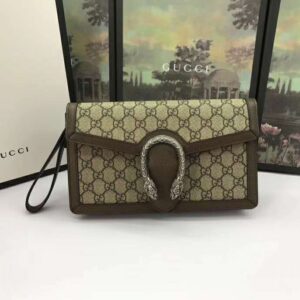 Gucci Women Dionysus GG Supreme Clutch Beige/Ebony GG Supreme Canvas