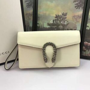 Gucci Women Dionysus Leather Clutch Metal-Free Tanned Leather White