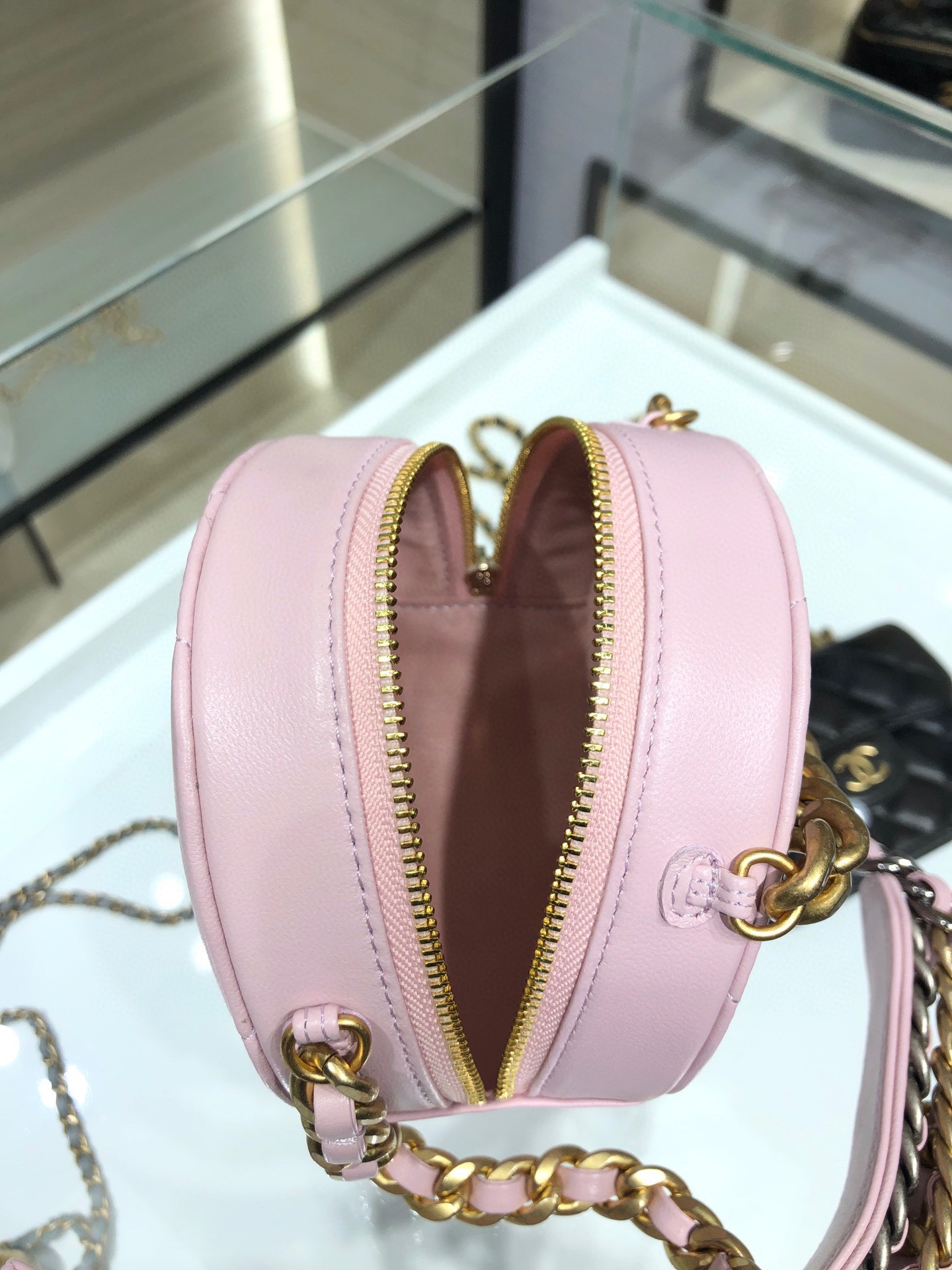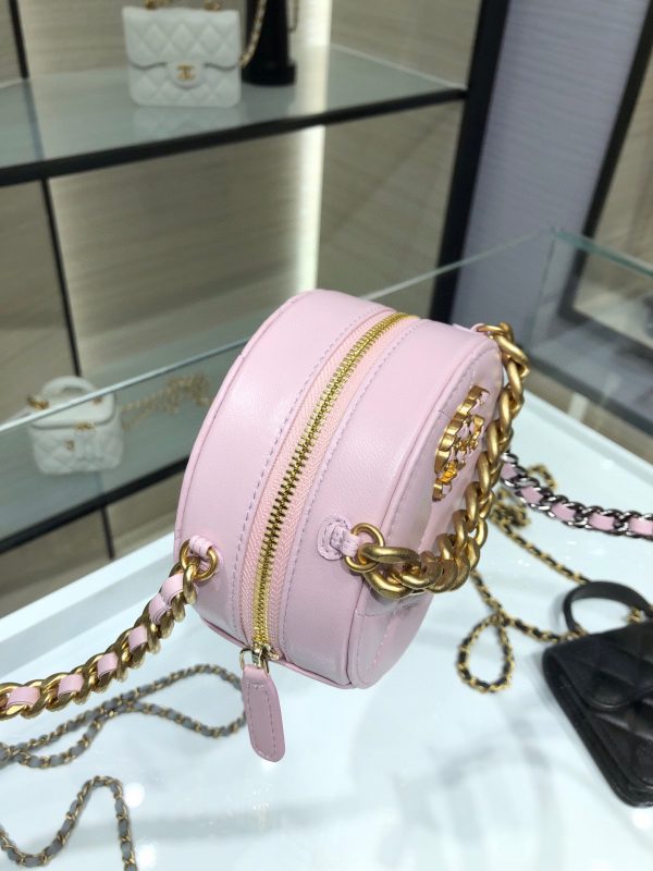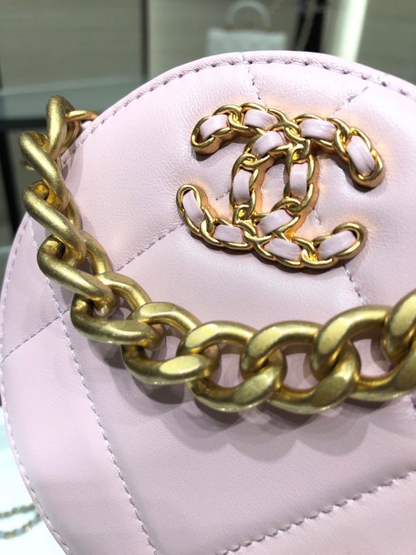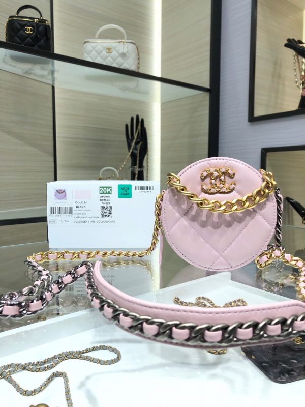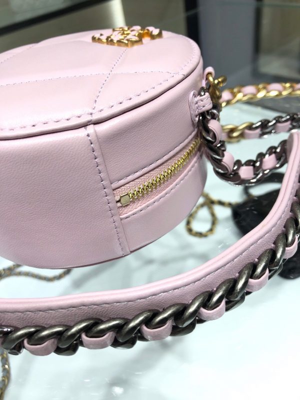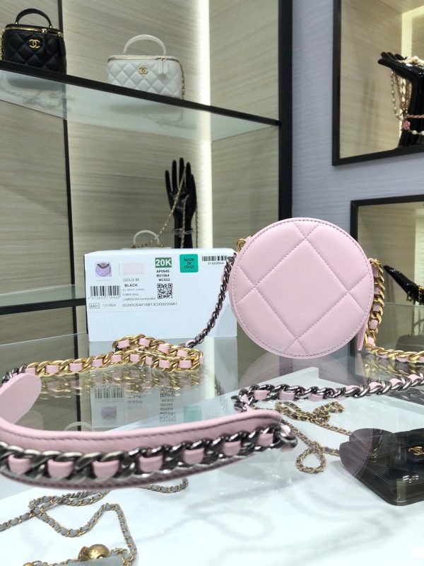 Chanel 19 handbag small round cake bag is a cute little round cake the texture of the sheepskin is invincible, the thick chain has the cool feeling of Leboy, and the lady dress is a taste of it those who like small bags can start  AP0945