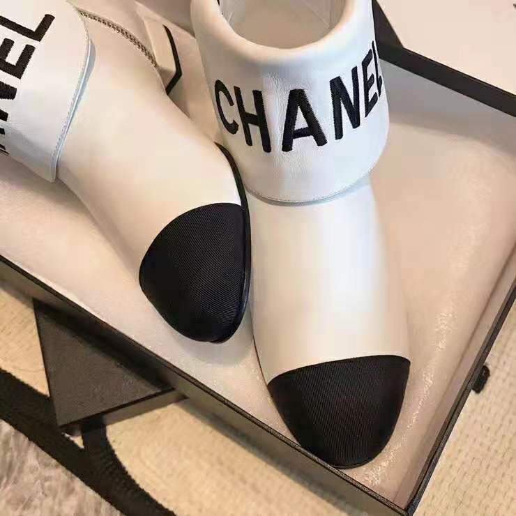 Chanel Women Ankle Boots in Lambskin & Grosgrain Leather 1.5 cm Heel-Beige