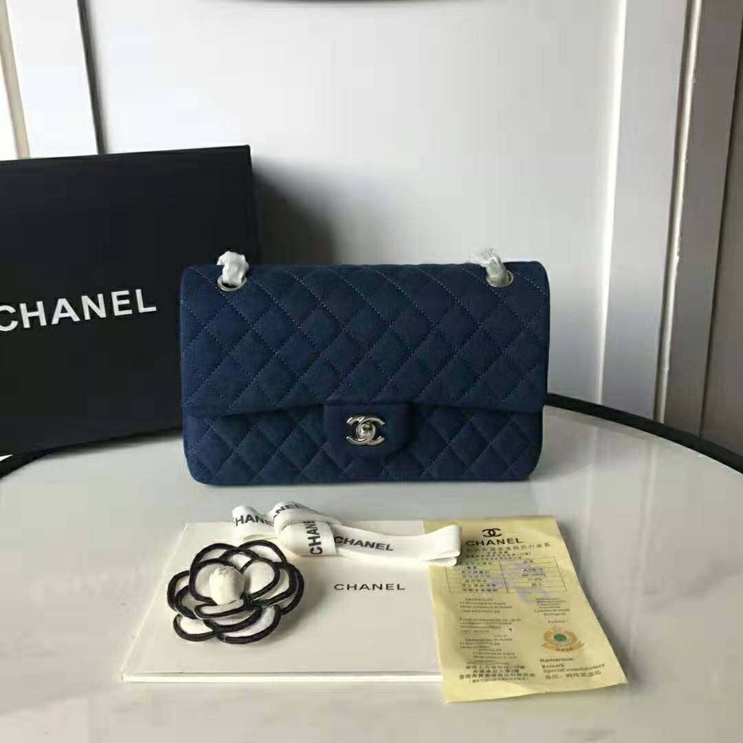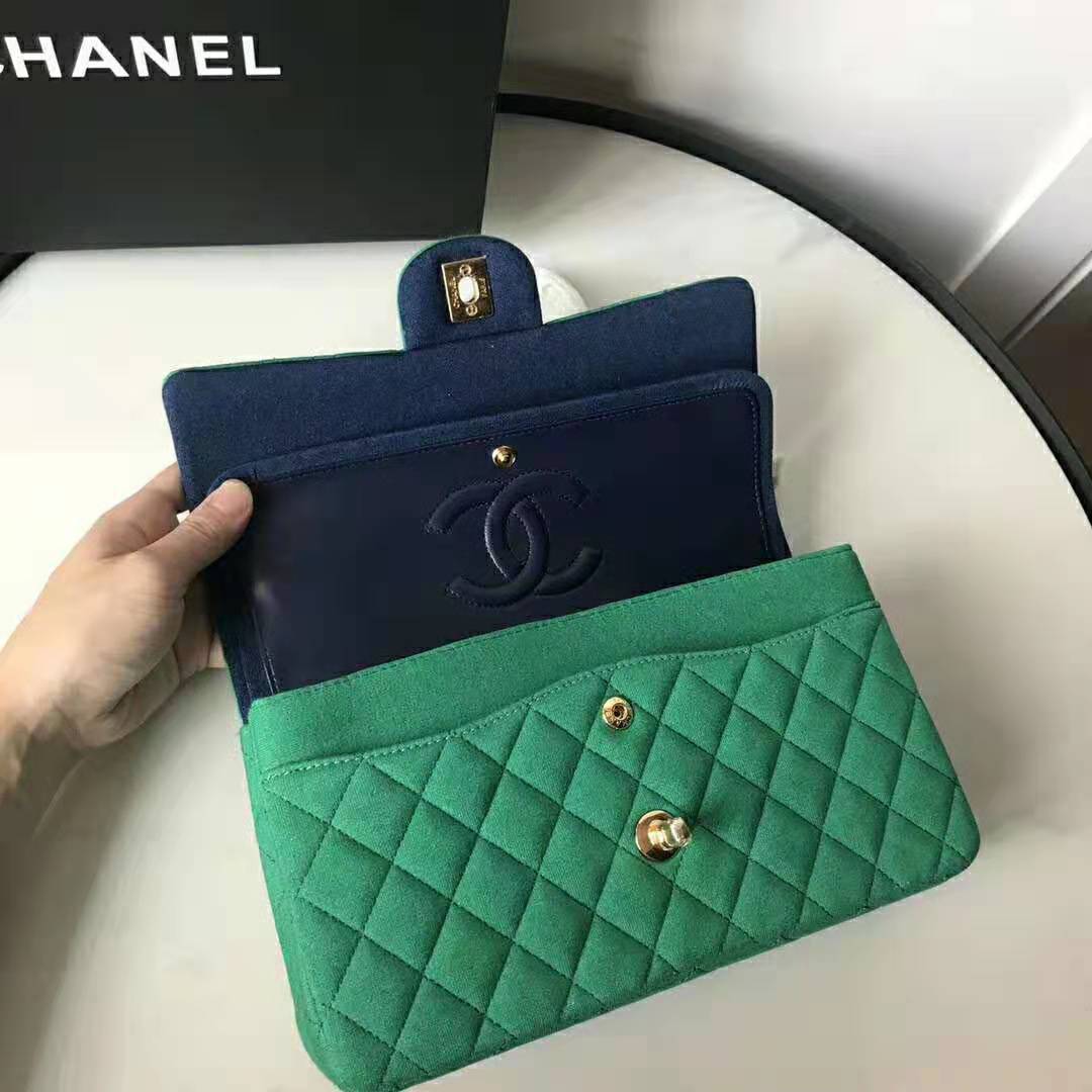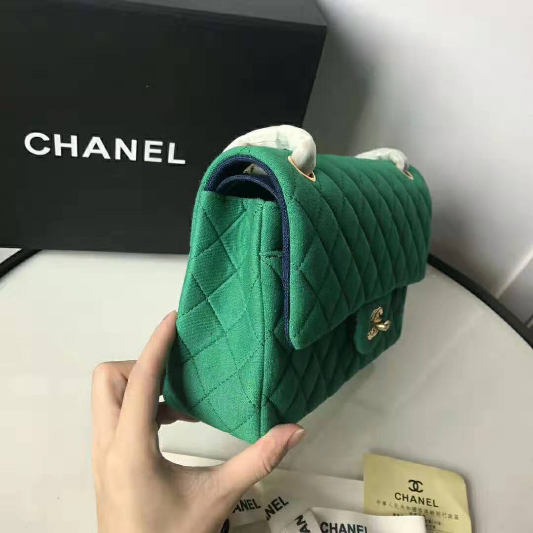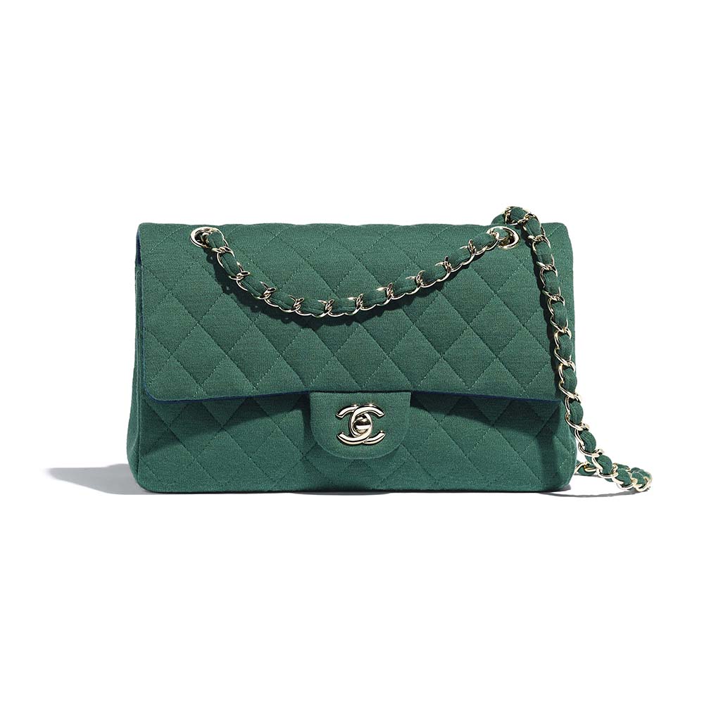 Chanel Women Classic Handbag in Jersey & Gold-Tone Metal