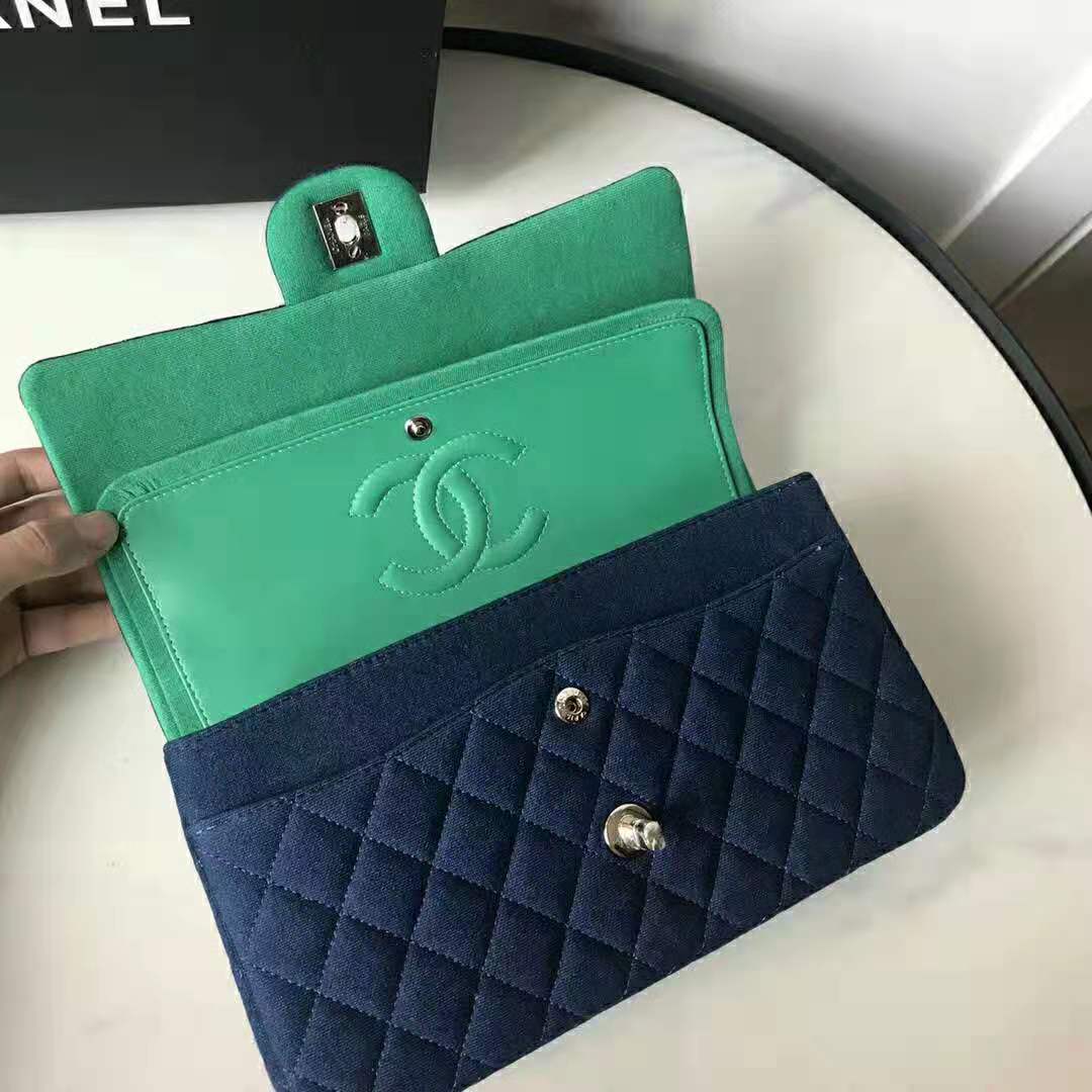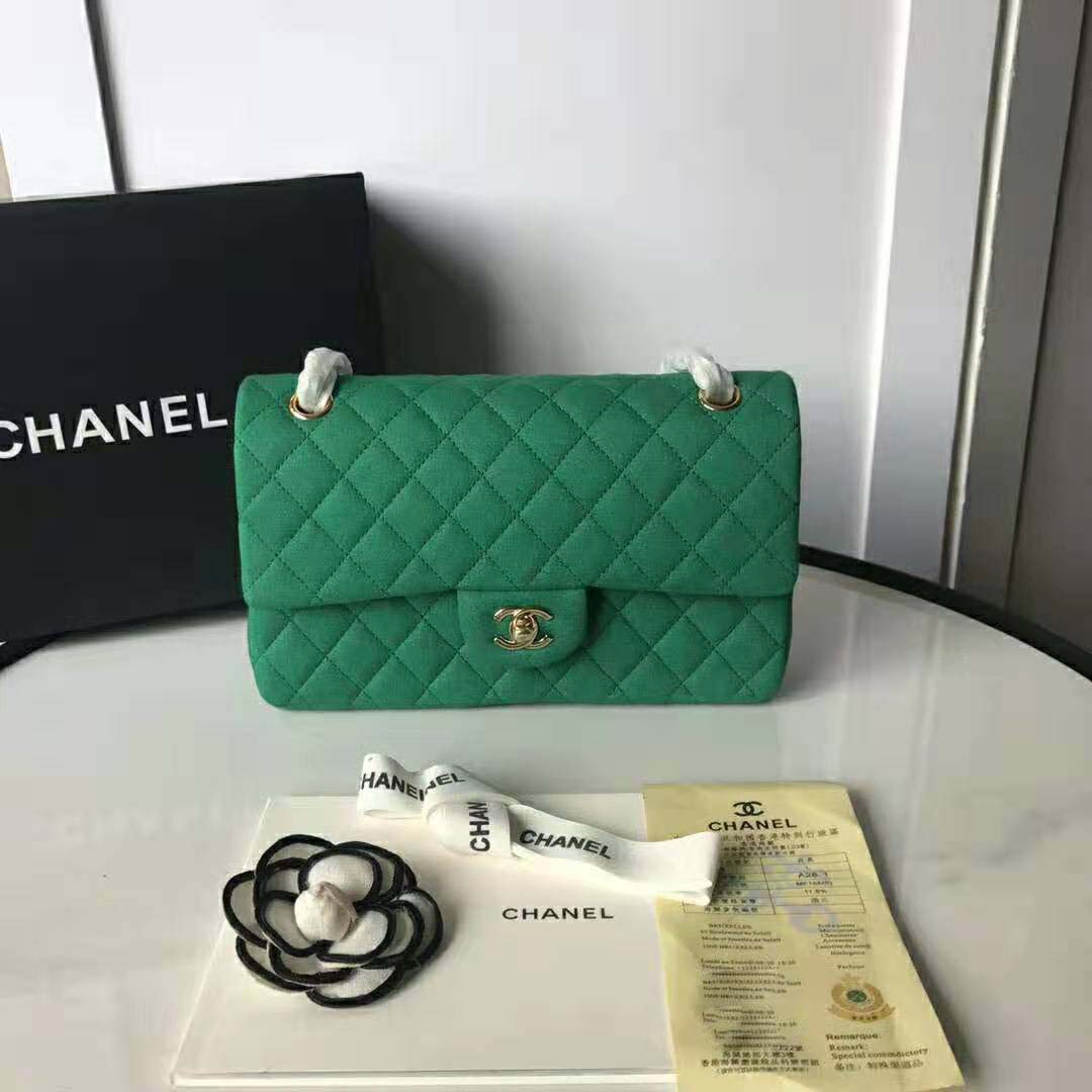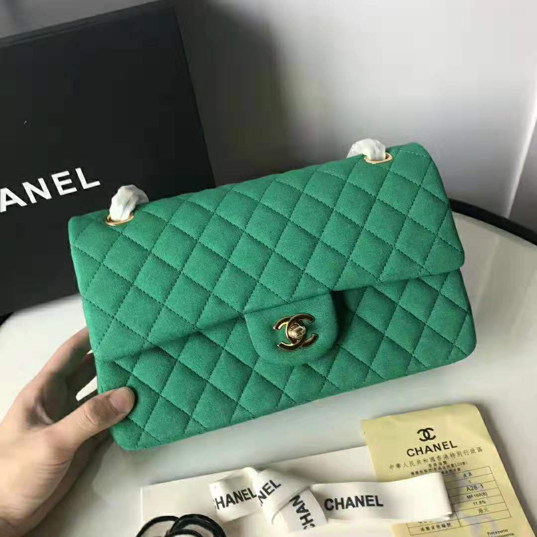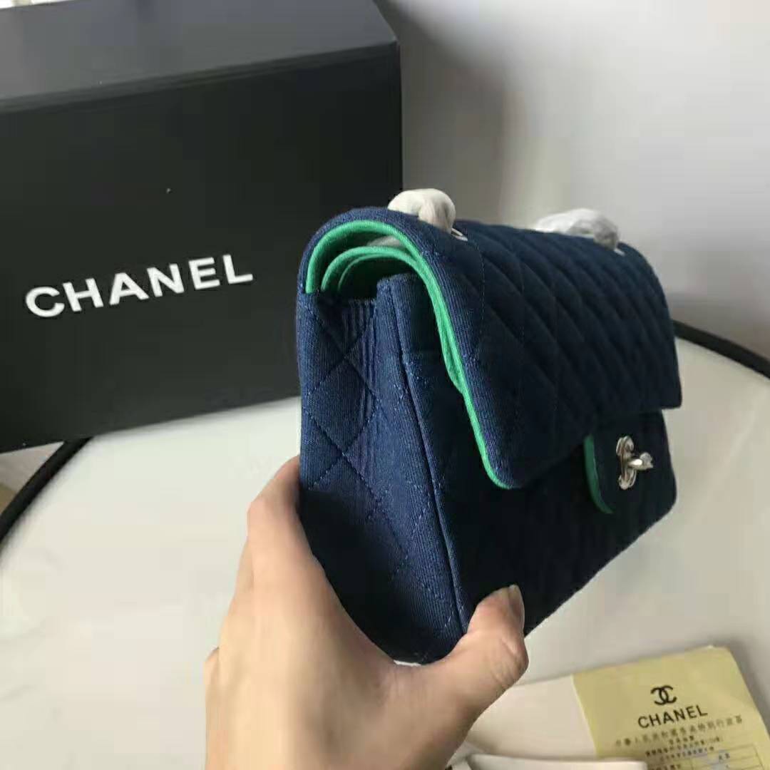 Chanel Women Classic Handbag in Jersey & Gold-Tone Metal