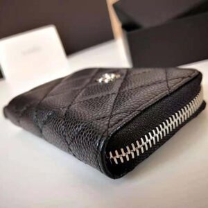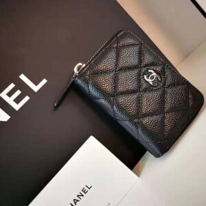 Chanel Women Classic Zipped Coin Purse in Grained Calfskin & Silver-Tone Metal-Black