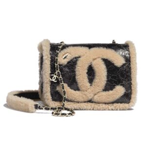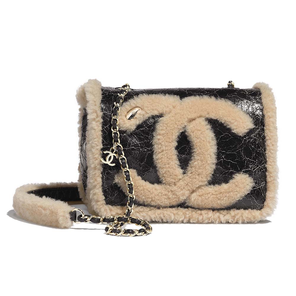Shiny Crumpled Sheepskin, Shearling Sheepskin & Gold-Tone Metal