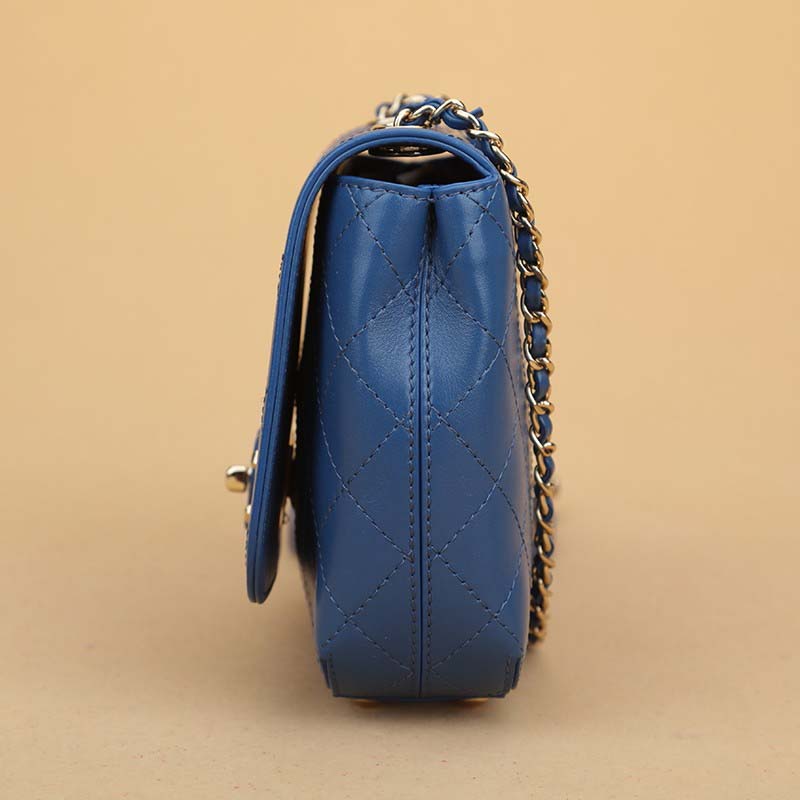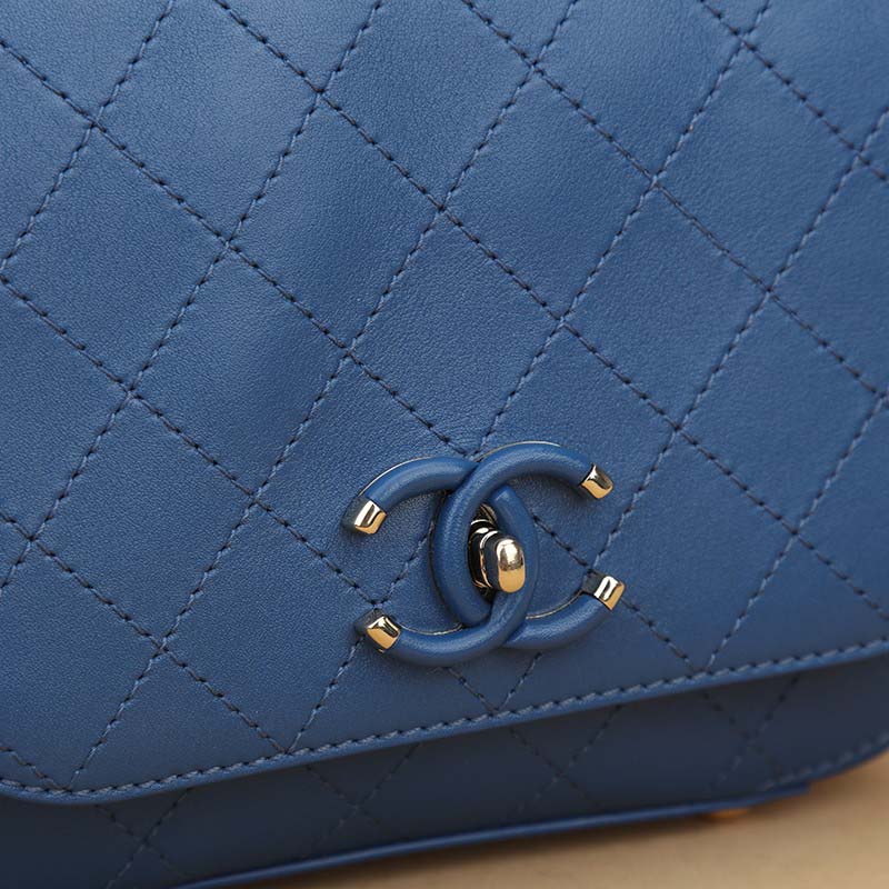 Chanel Women Flap Bag in Smooth Diamond Pattern Calfskin Leather-Blue