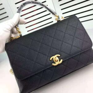 Chanel Women Flap Bag with Top Handle in Calfskin-Black