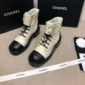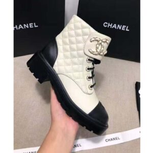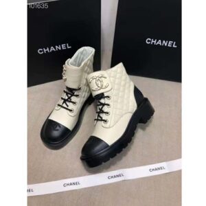 Chanel Women Lace-Ups Shiny Goatskin & Calfskin White 2 cm Heel