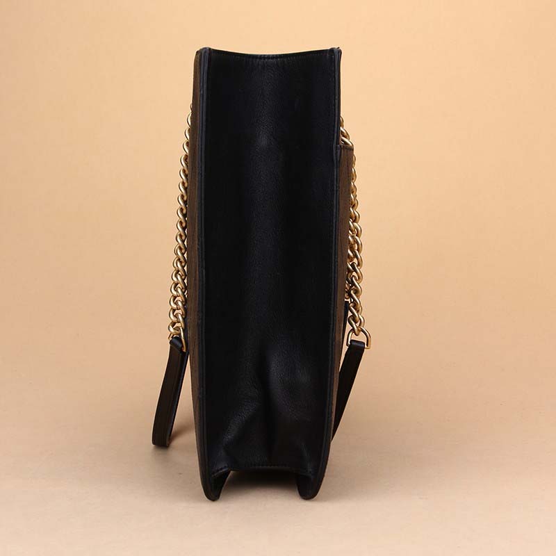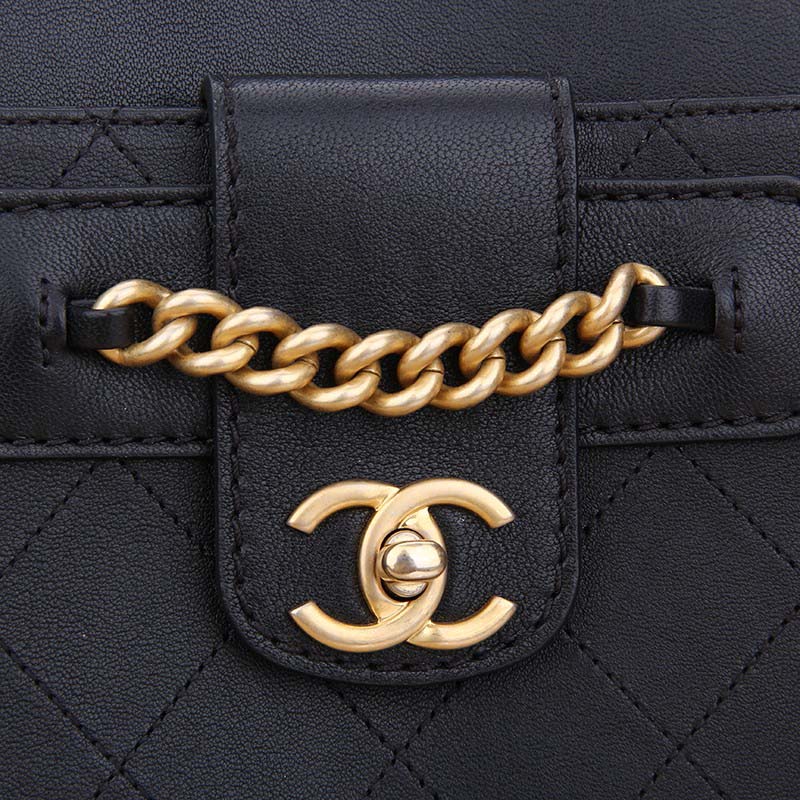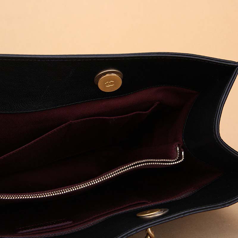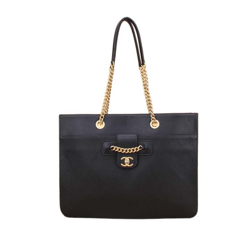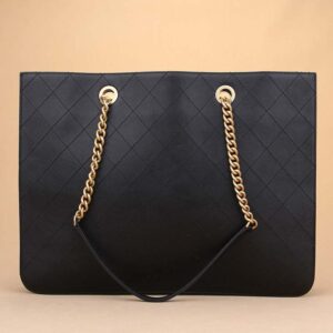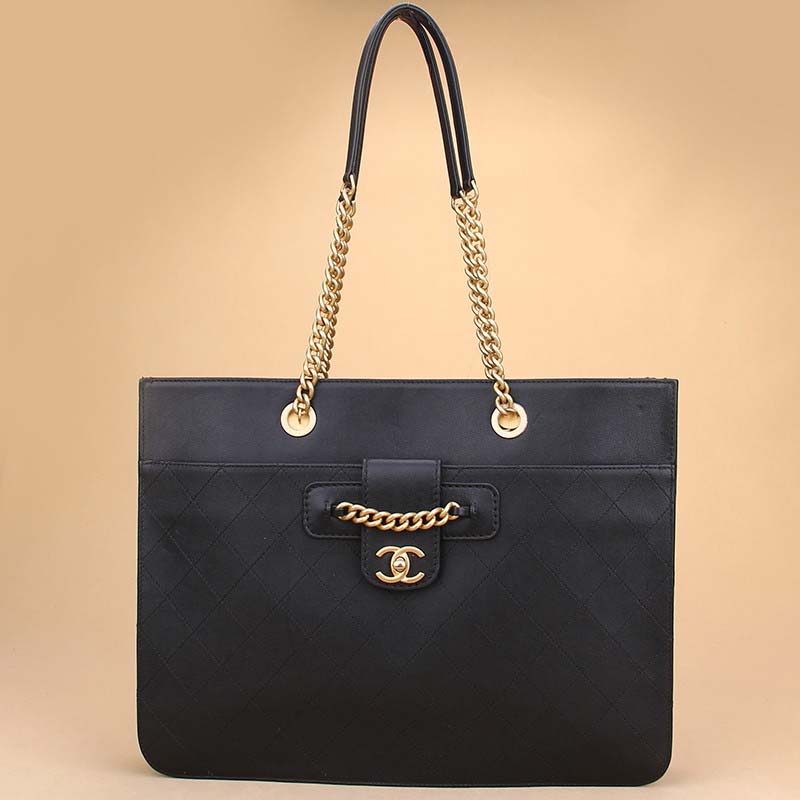 Chanel Women Large Shopping Bag with Chain in Calfskin Leather-Black