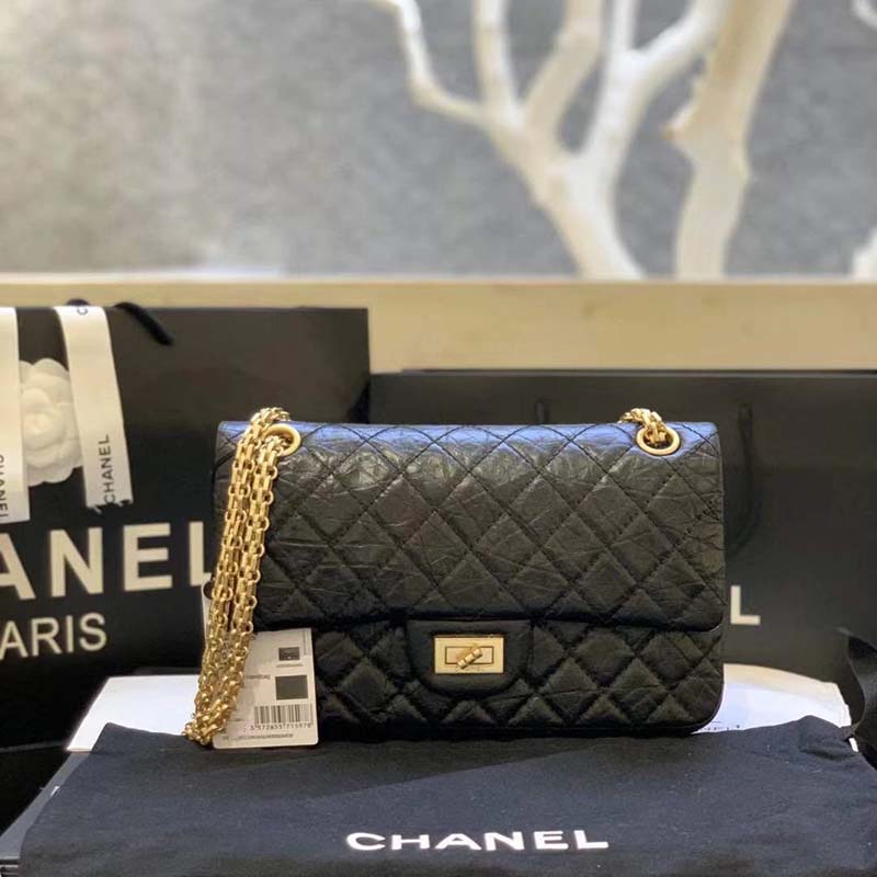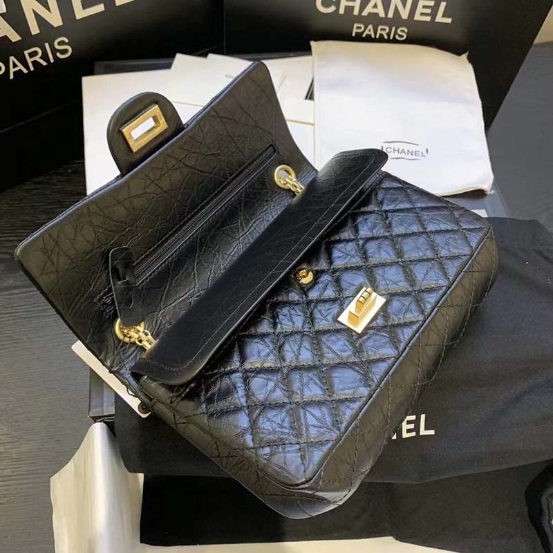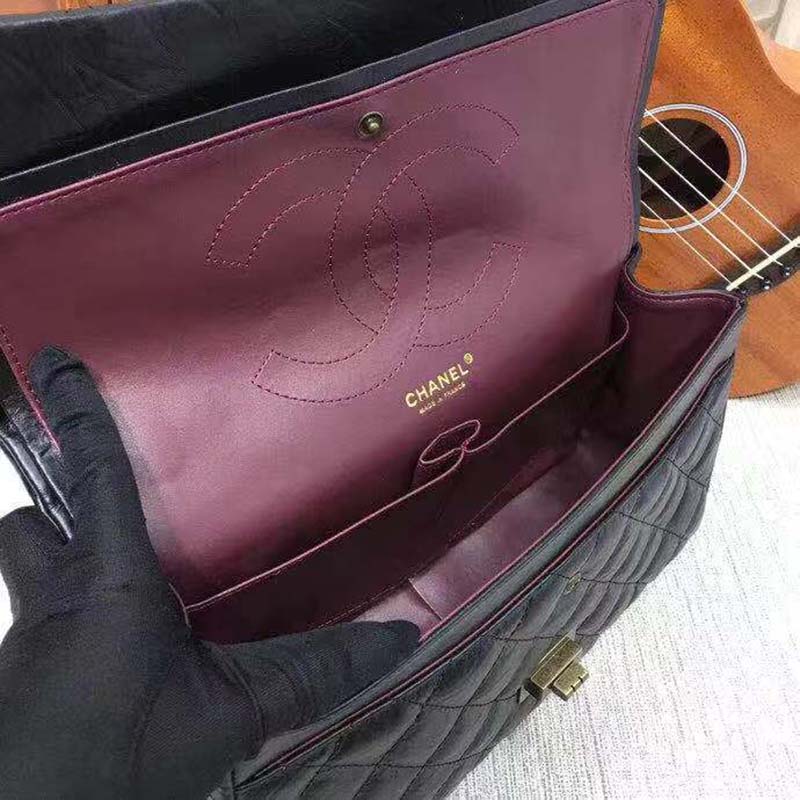 Chanel Women Maxi 2.55 Handbag in Aged Calfskin Leather-Black