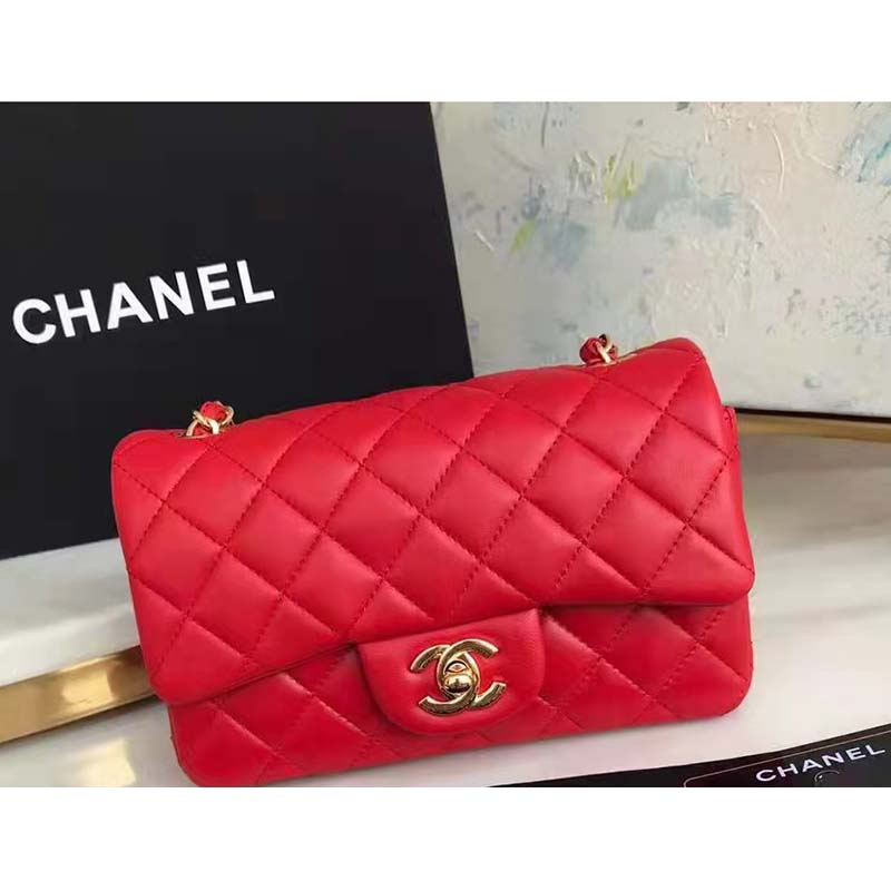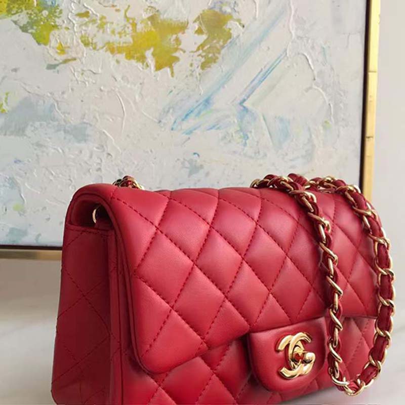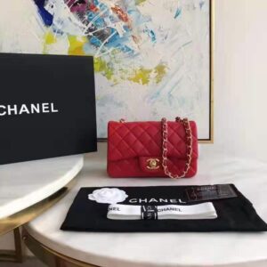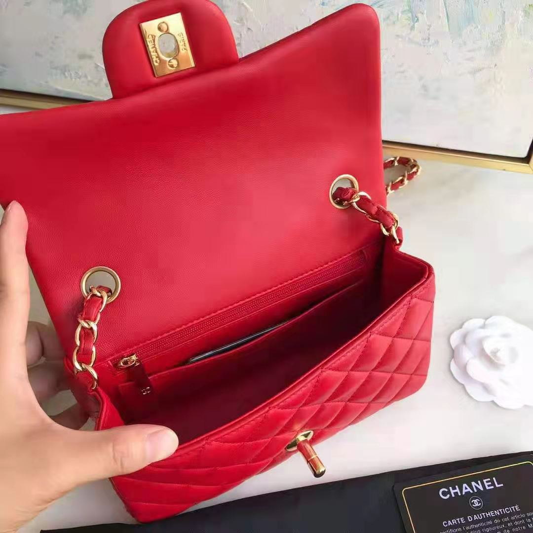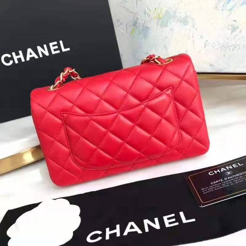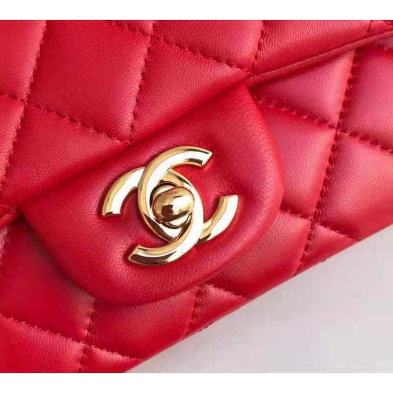 Chanel Women Mini Flap Bag in Lambskin Leather-Red