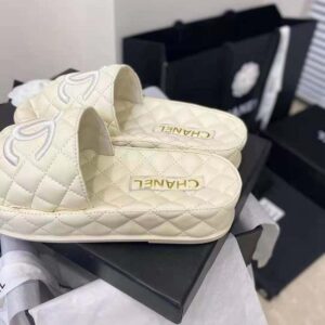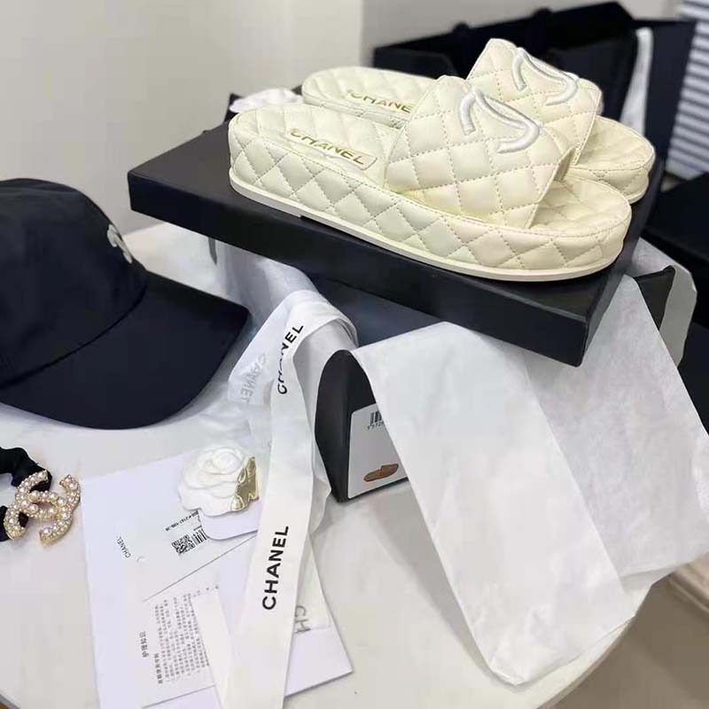 Chanel Women Mules Mules Lambskin Ecru 0.5 cm Heel