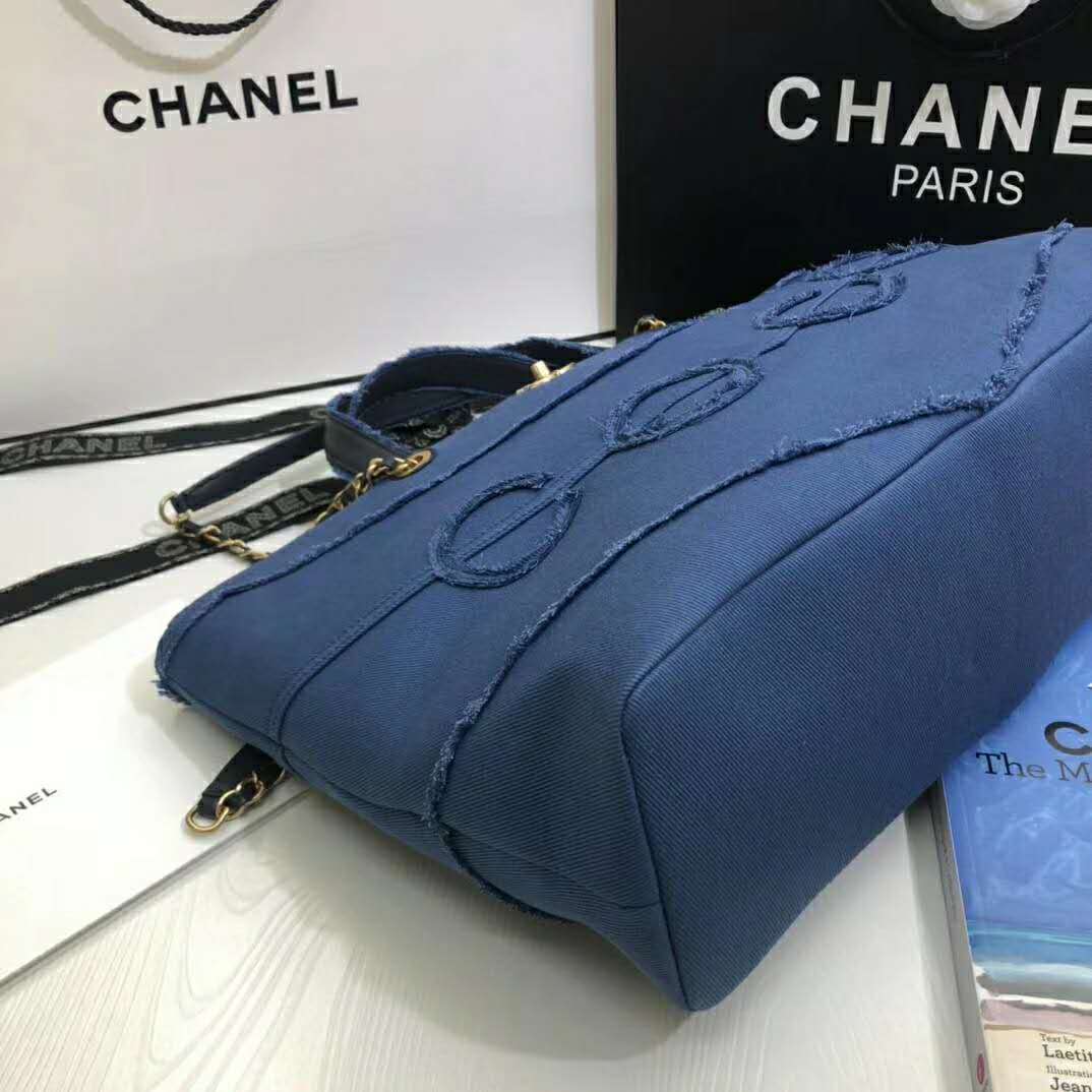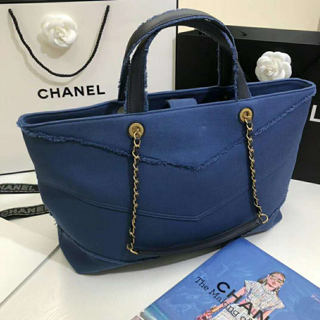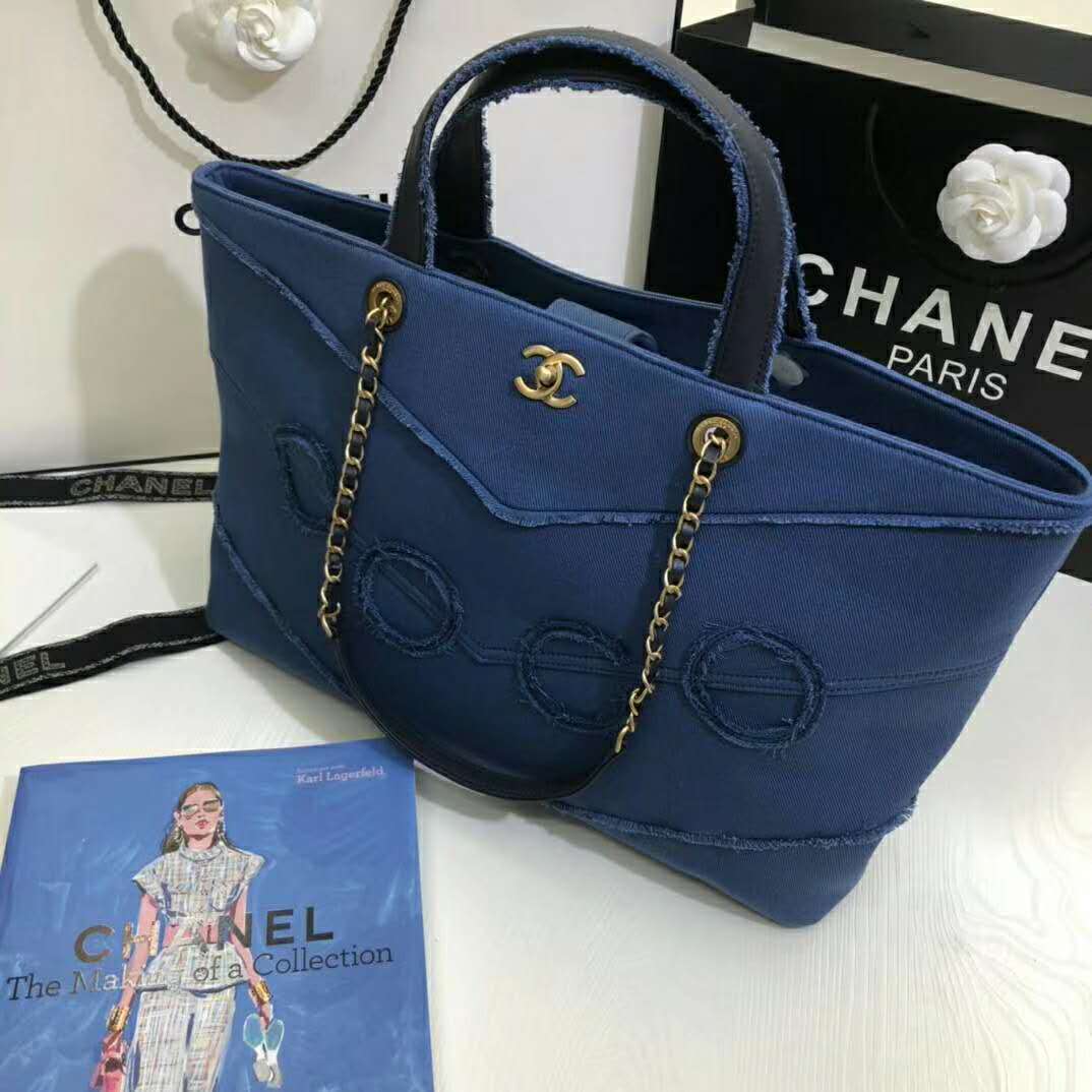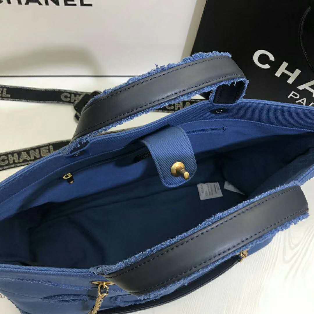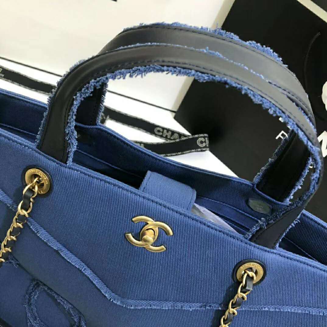 Chanel Women Shopping Bag Denim & Gold-Tone Metal Navy Blue