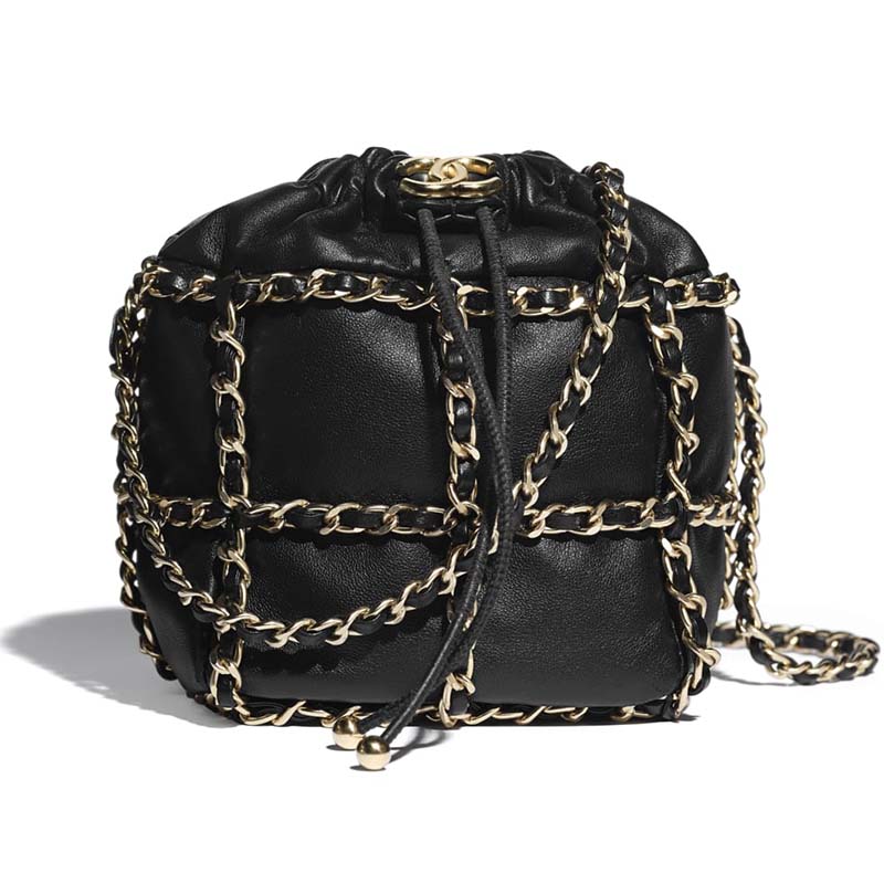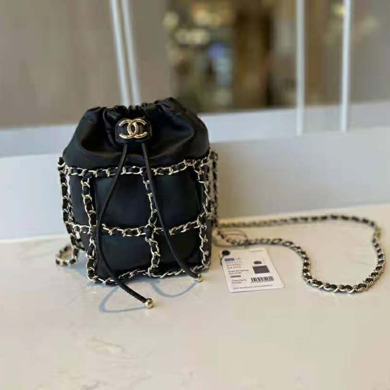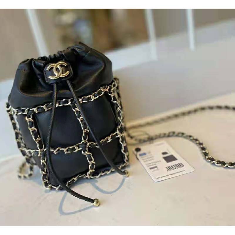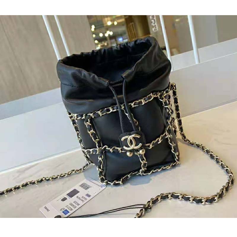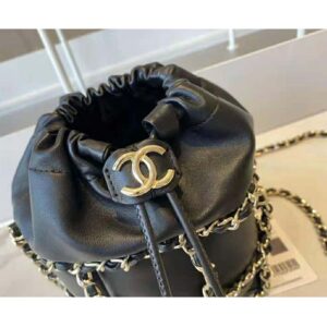 Chanel Women Small Drawstring Bag Lambskin & Gold Metal Black
