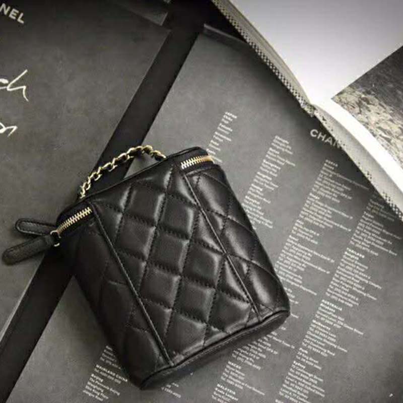 Chanel Women Small Mini Vanity with Classic Chain Lambskin-Black