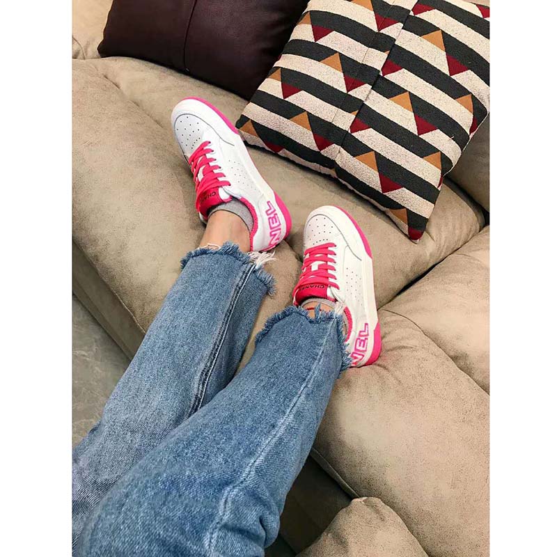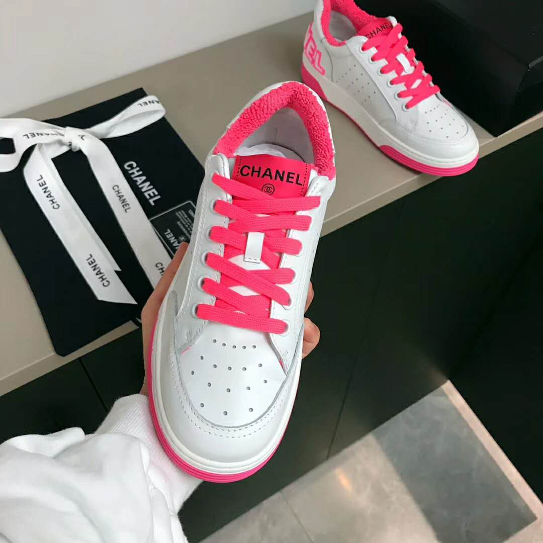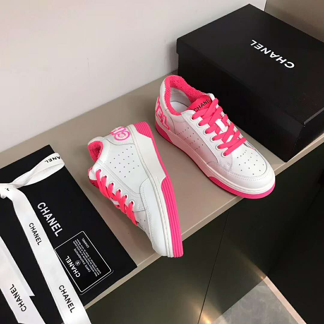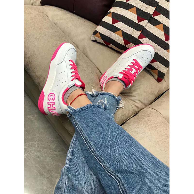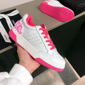 Chanel Women Sneakers Calfskin White & Fuchsia