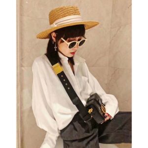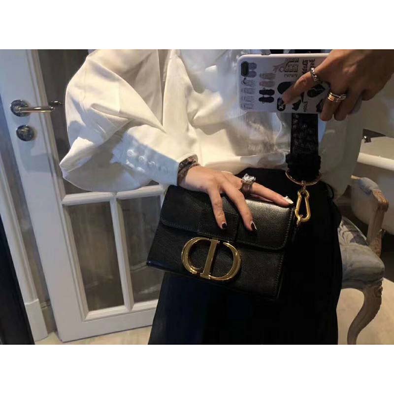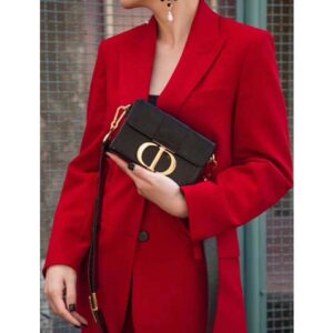 Meticulous details like the embossed ’30 Montaigne’ signature on the back and the military-inspired buckle enhance the design.