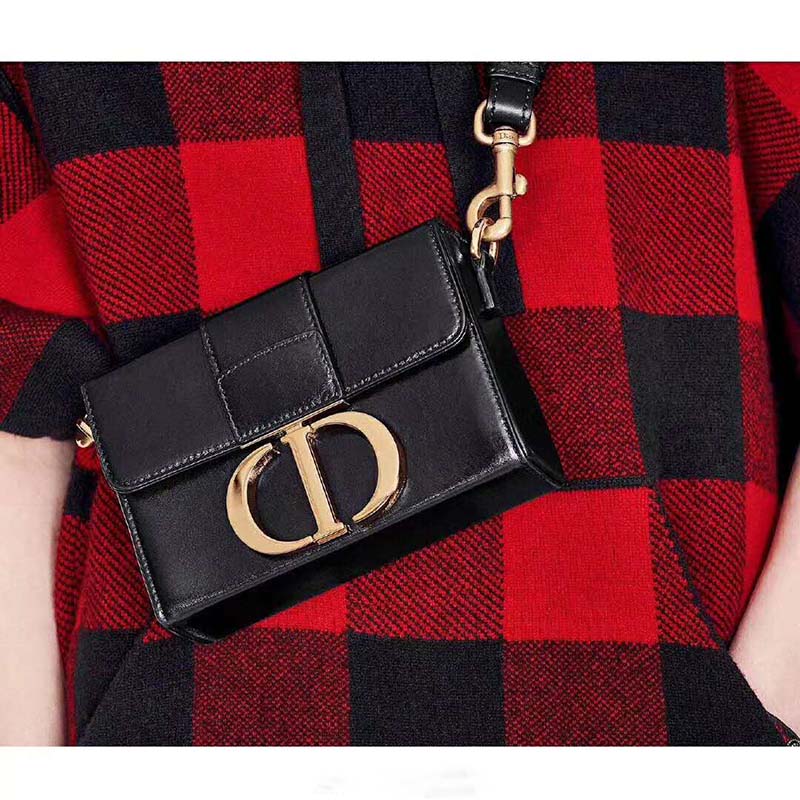 A flap closure is finished with a unique, shiny antique gold ‘CD’ clasp, inspired by the seal of a Christian Dior perfume bottle.