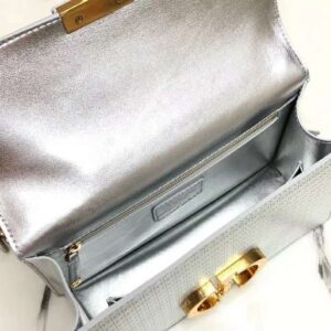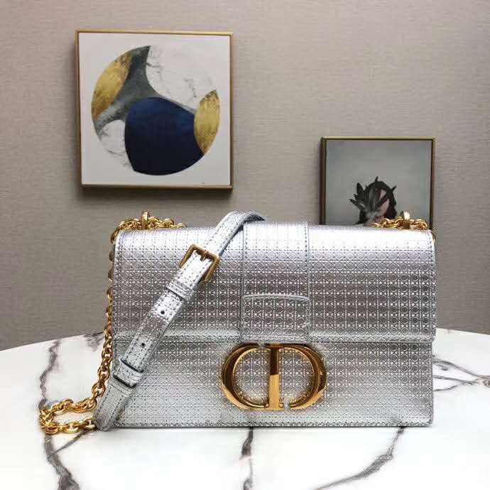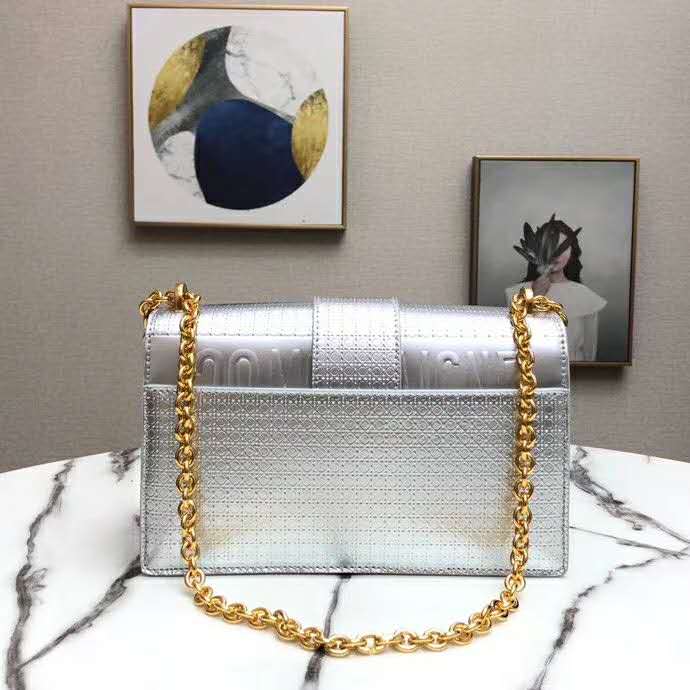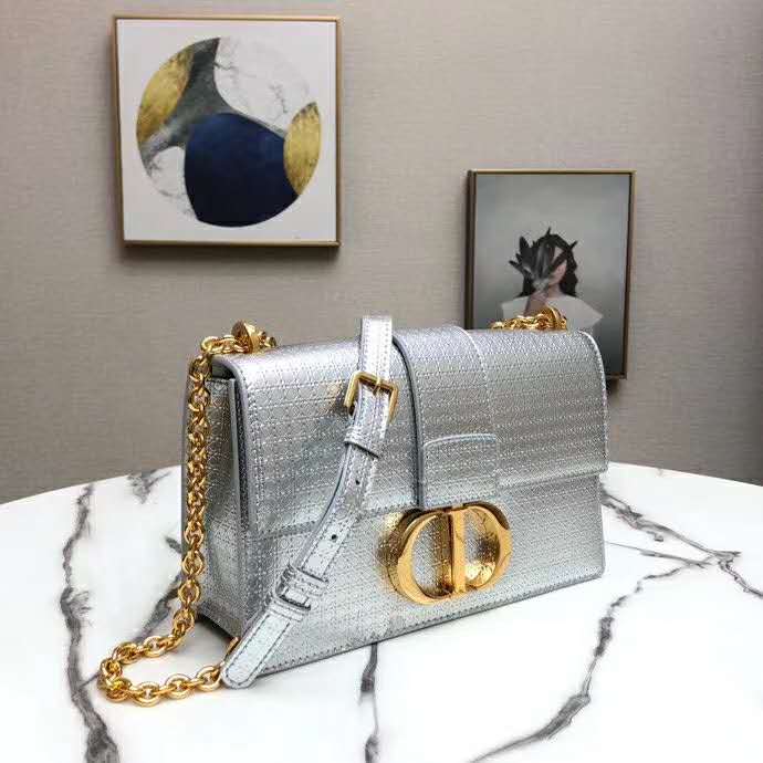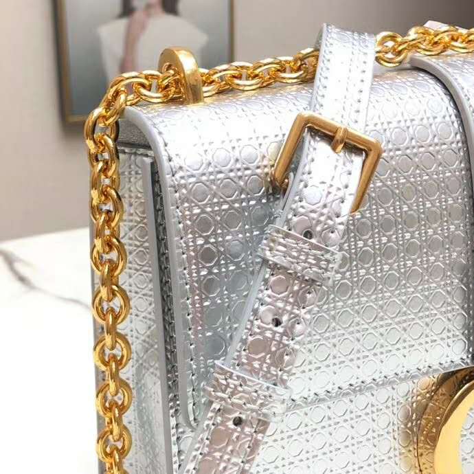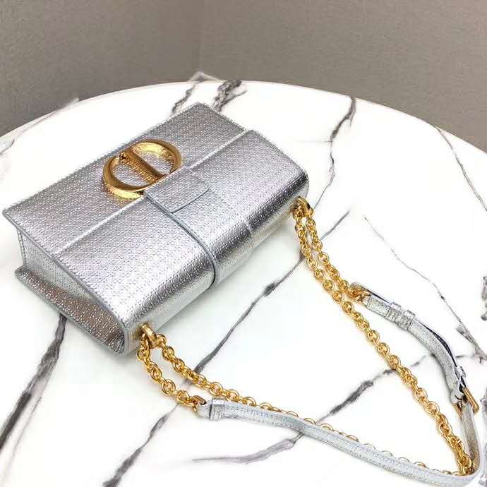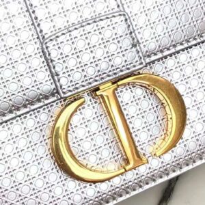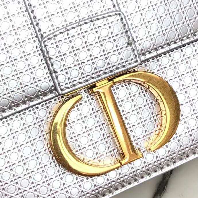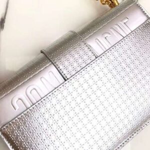 The flap is embellished with a pale gold-finish metal ‘CD’ clasp, inspired by the seal of a Christian Dior perfume bottle.