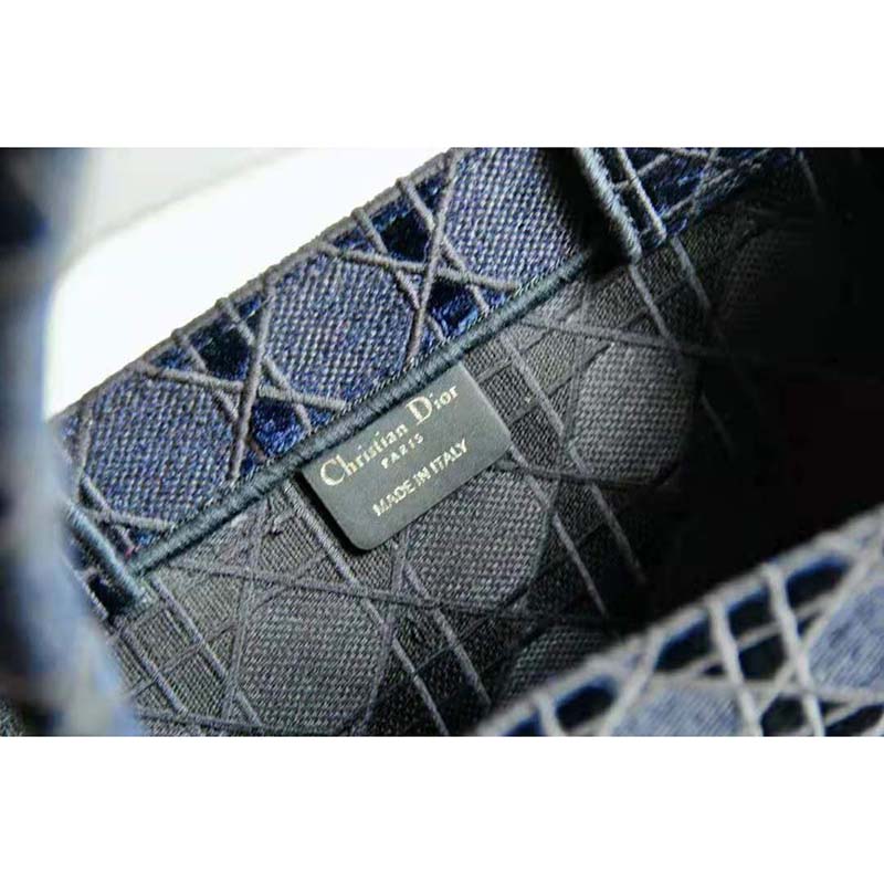 Ideally designed to carry all your daily essentials, the large shape is crafted in blue velvet that is fully embroidered with the Cannage motif in matte cotton thread, lending it texture and dimension, and boasts a ‘Christian Dior’ signature on the front.