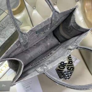 Designed to hold all daily essentials, the style is fully embroidered with a gray Toile de Jouy Reverse motif, a variation of the House’s hallmark pattern with a play on reversed colors. Adorned with the ‘CHRISTIAN DIOR’ signature on the front, the tote exemplifies the House’s signature savoir-faire and may be carried by hand or worn over the shoulder.