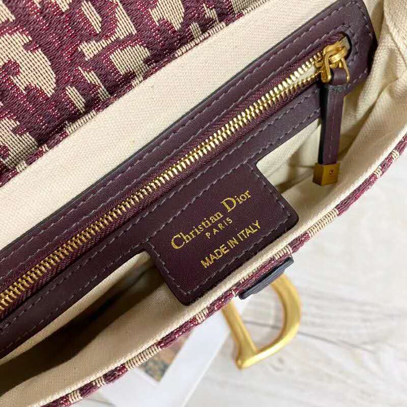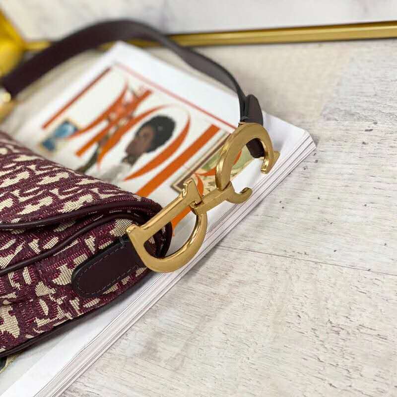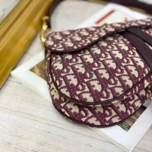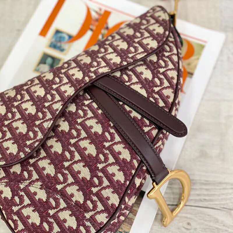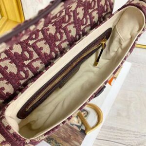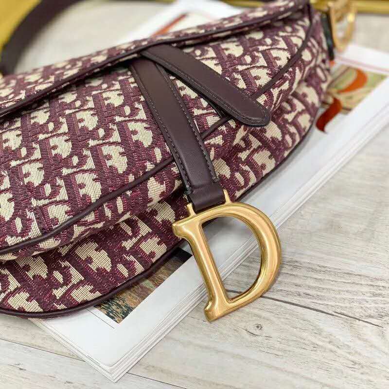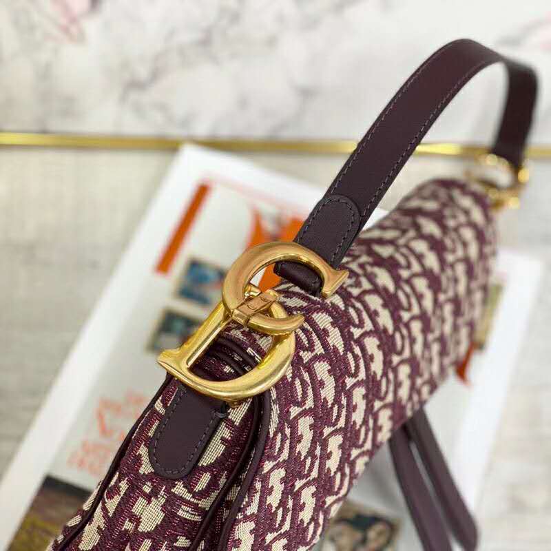 Saddle bag in burgundy Dior Oblique embroidered canvas.