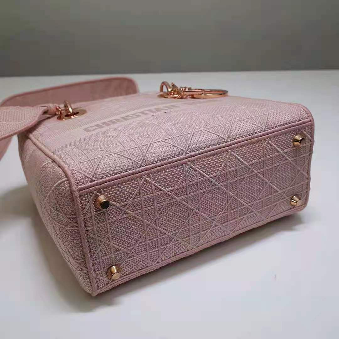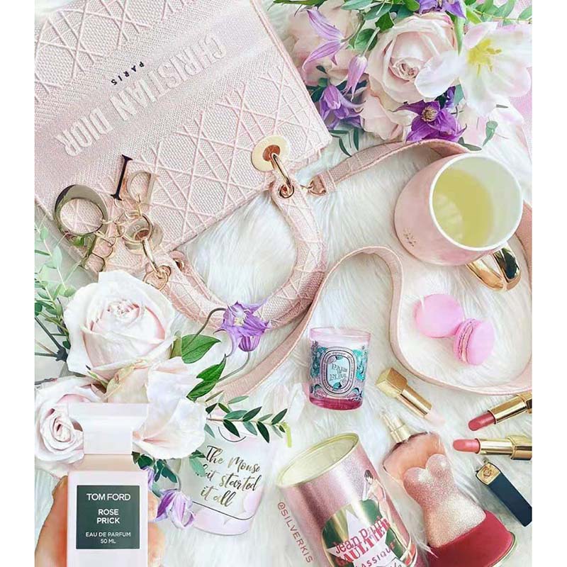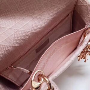 Crafted in fully embroidered Bois de Rose Cannage canvas with a ‘Christian Dior’ signature on the front, its supreme finishing instantly stands out.