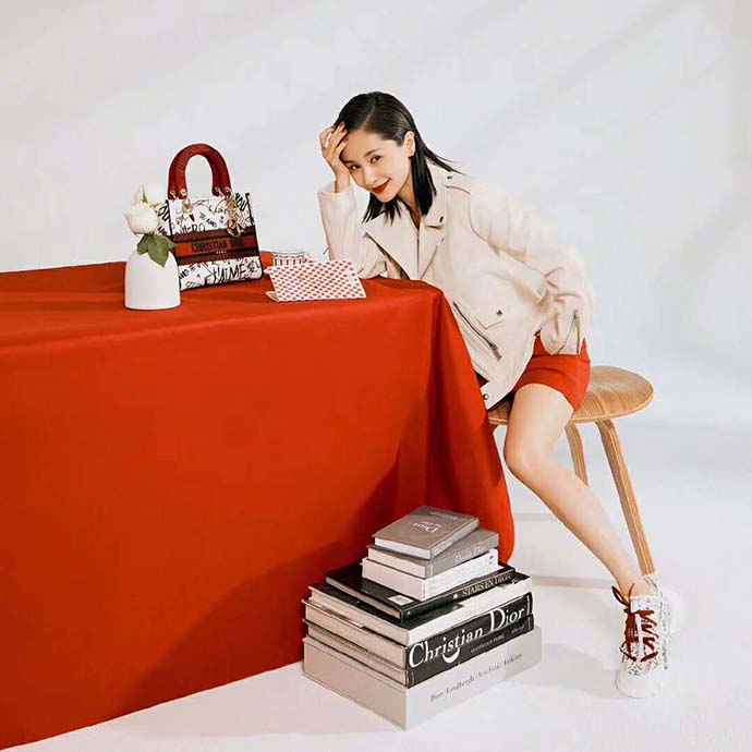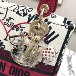 A white enamel heart charm with red polka dots joins the pale gold signature ‘D. I. O. R.’ charms in embellishing the classic silhouette.