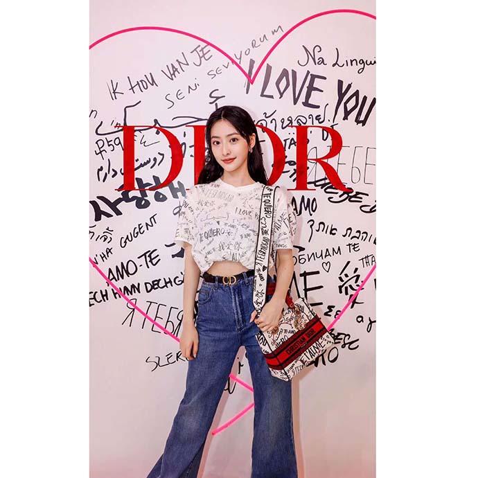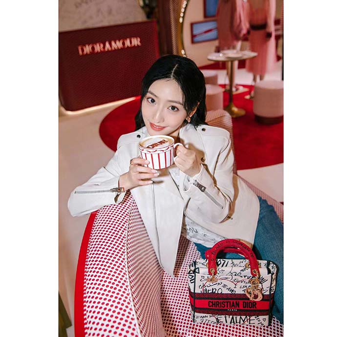 Part of the Dioramour capsule collection, this sleek and feminine latte-colored bag is fully embroidered with the Dioramour Graffiti motif, stating the words ‘I love you’ in 38 different languages.
