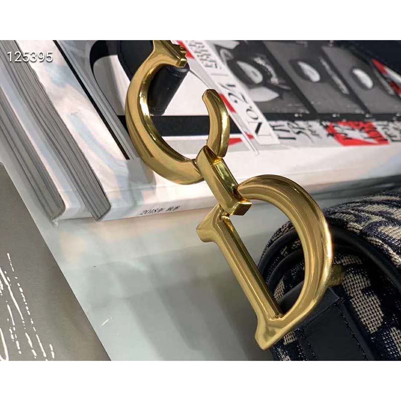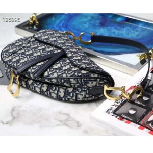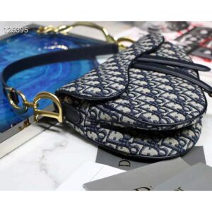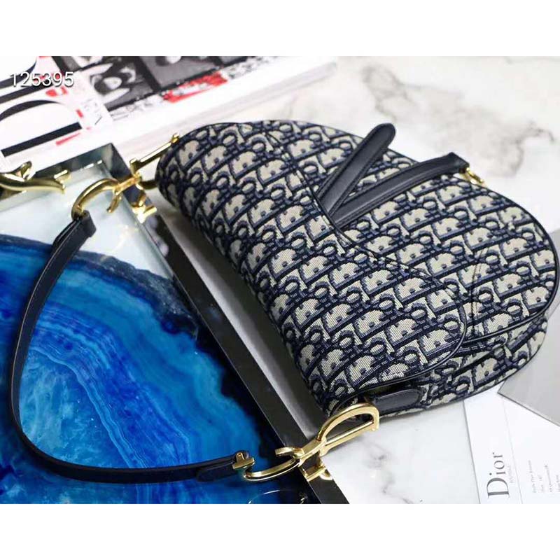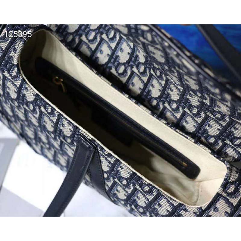 Saddle bag in blue Dior Oblique jacquard canvas, calfskin leather details.