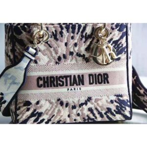 Equipped with a wide, reversible and removable embroidered shoulder strap, the medium bag can be carried by hand, worn over the shoulder or crossbody, pairing easily with other matching Tie & Dior creations of the season.