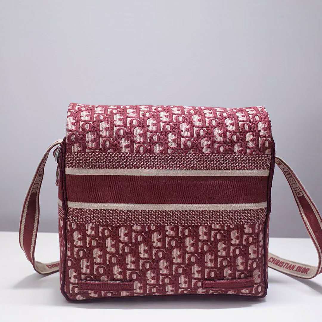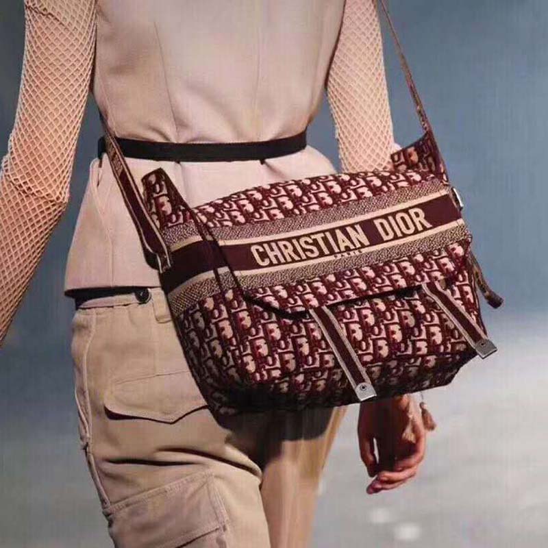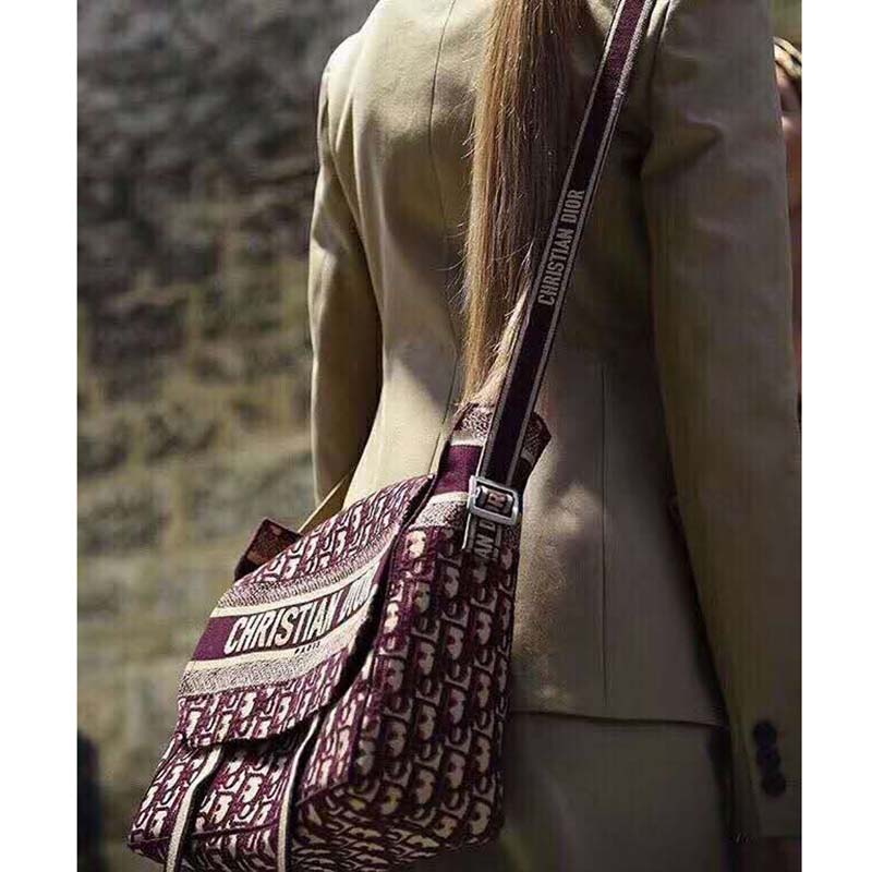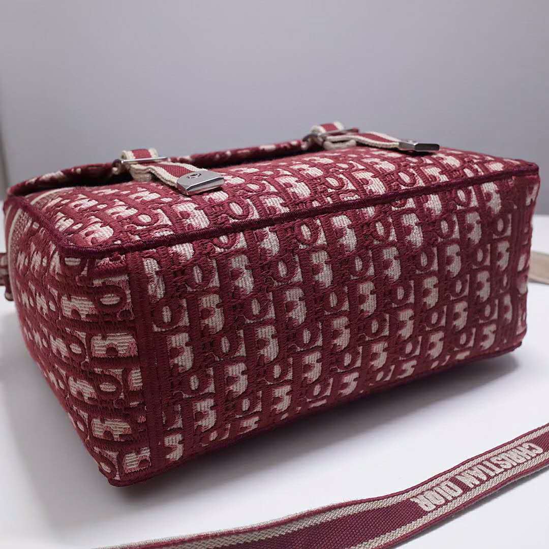 Messenger bag in burgundy Dior Oblique embroidered canvas.