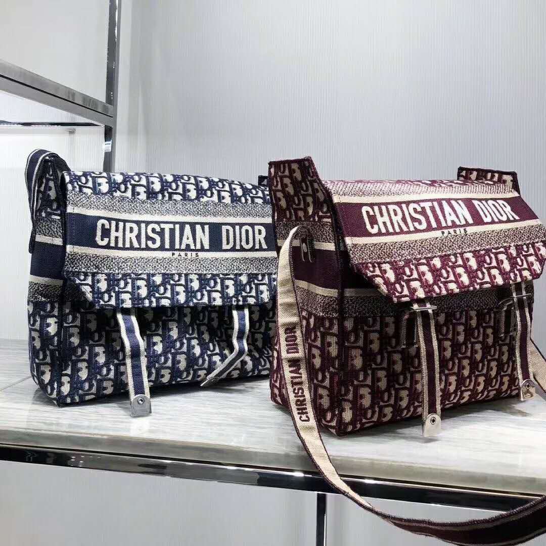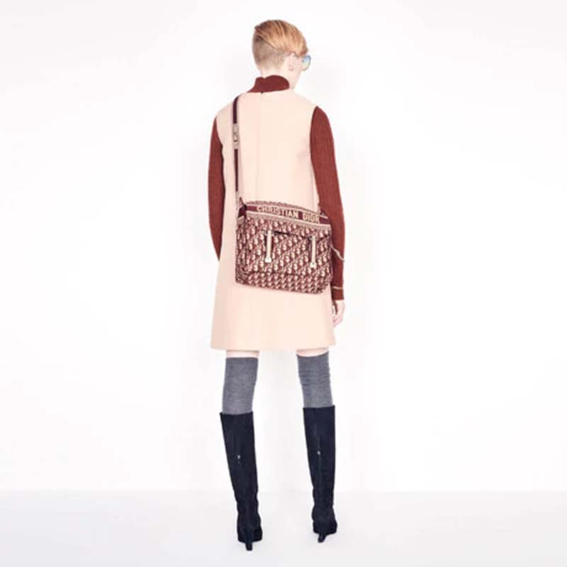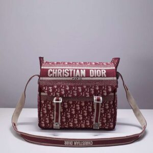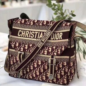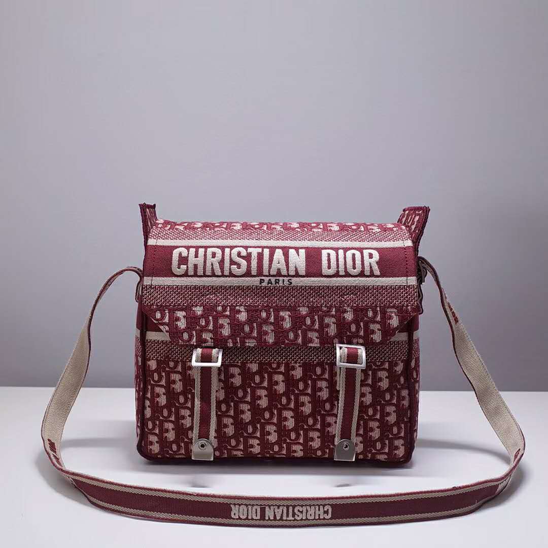 Messenger bag in burgundy Dior Oblique embroidered canvas.
