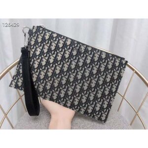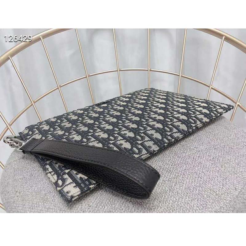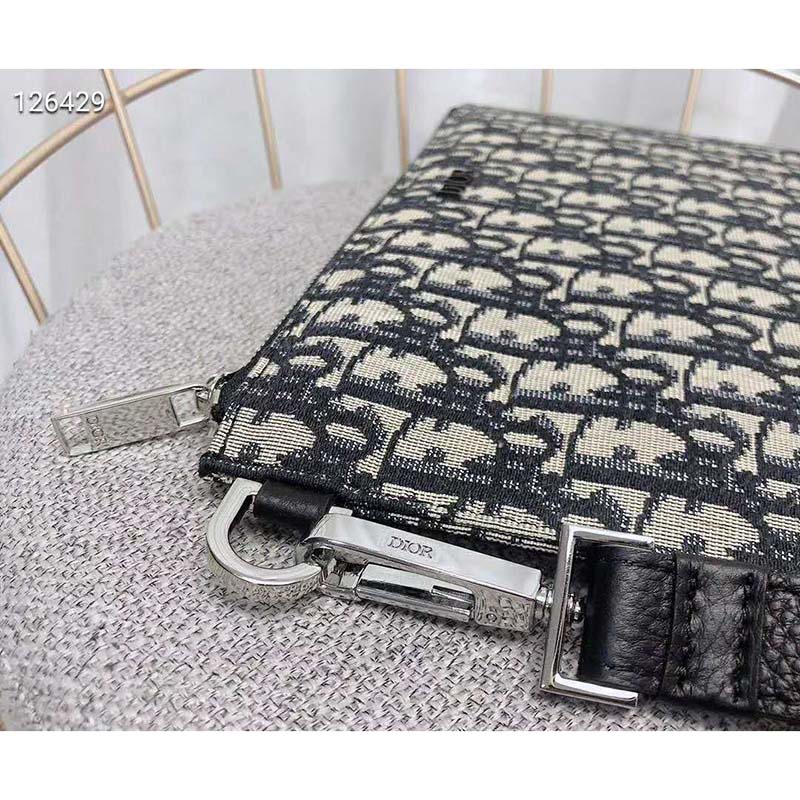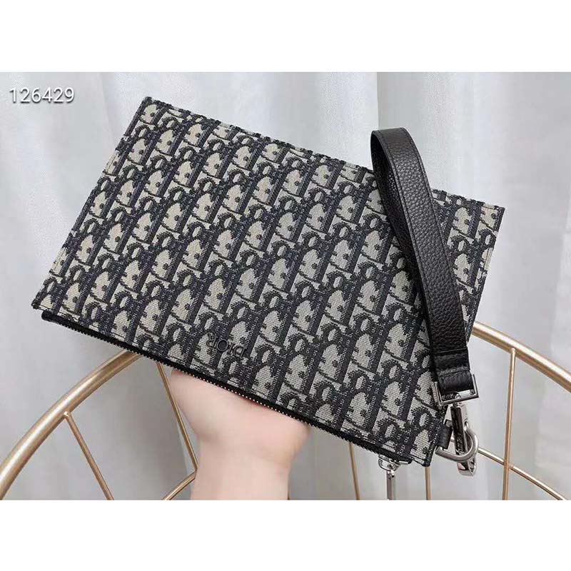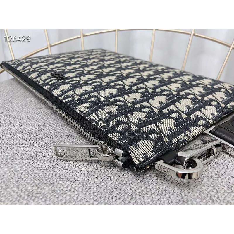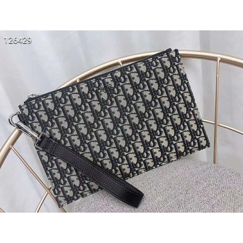 The pouch is luxuriously crafted in beige and black Dior Oblique jacquard, which was introduced by the House in 1967.