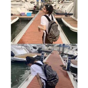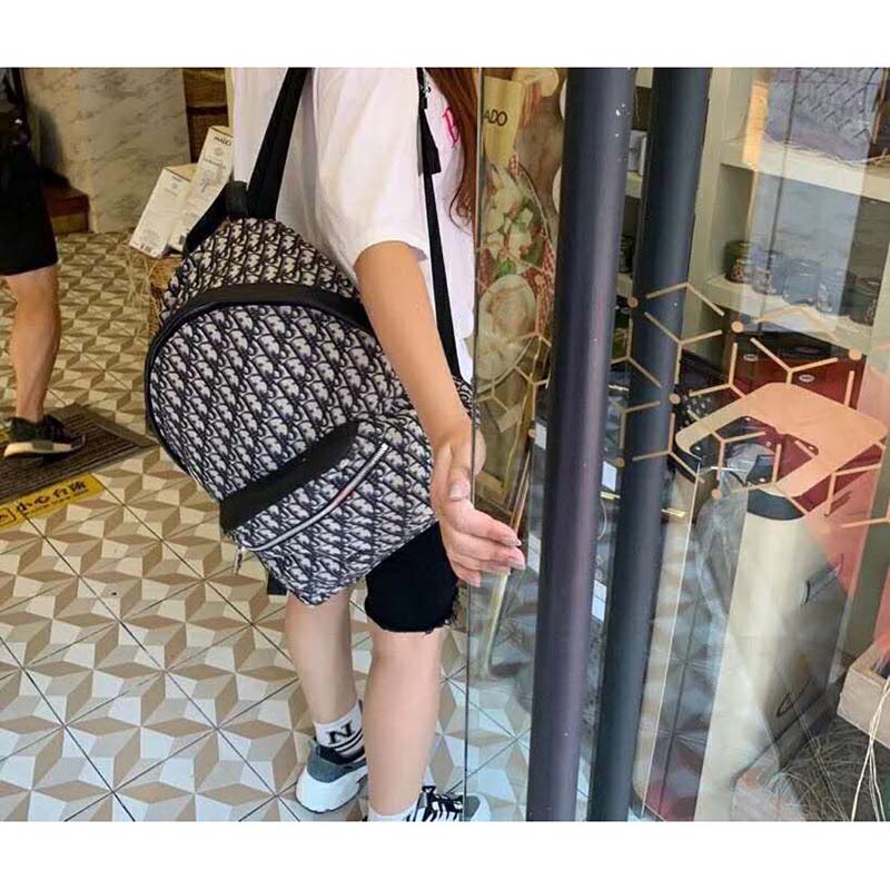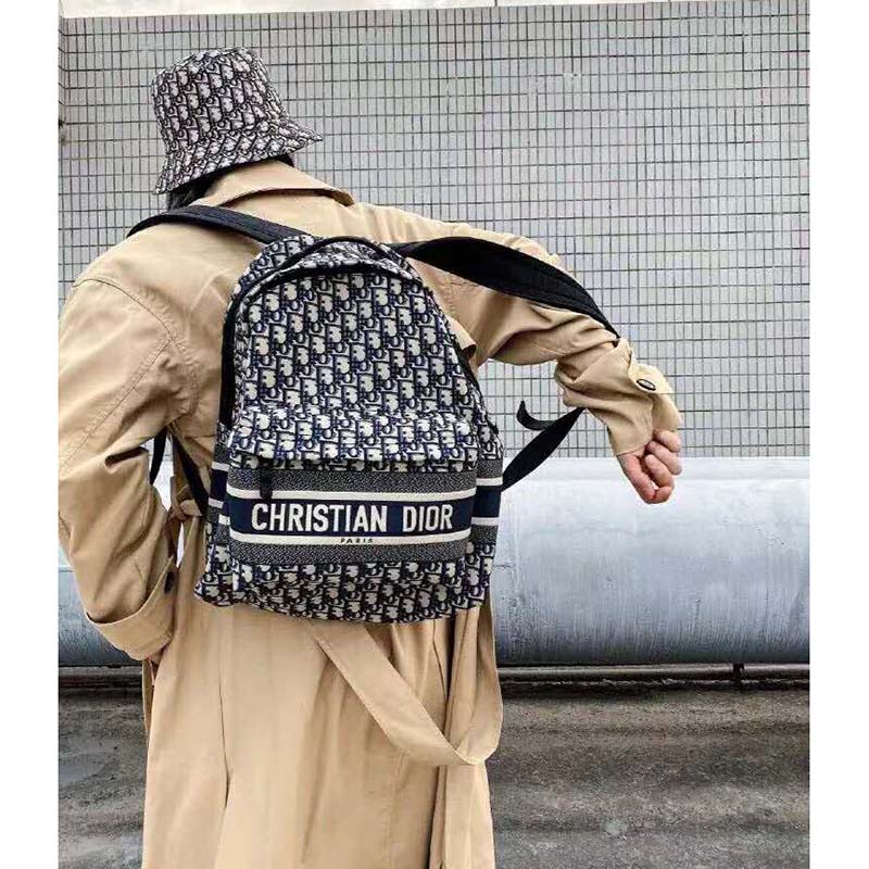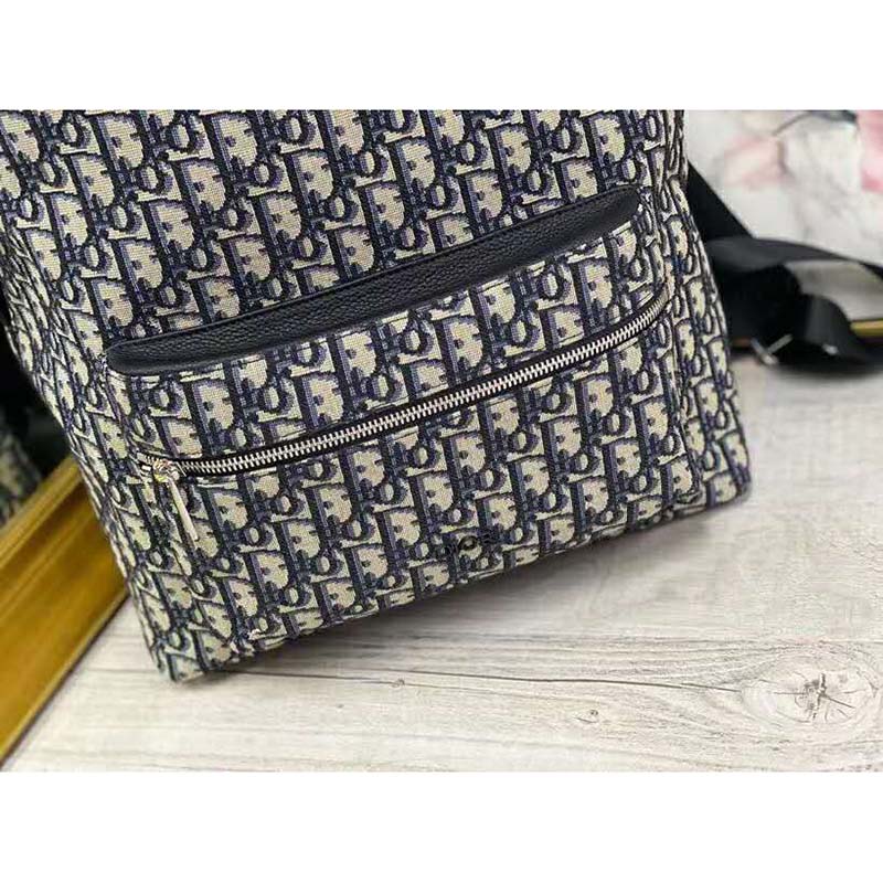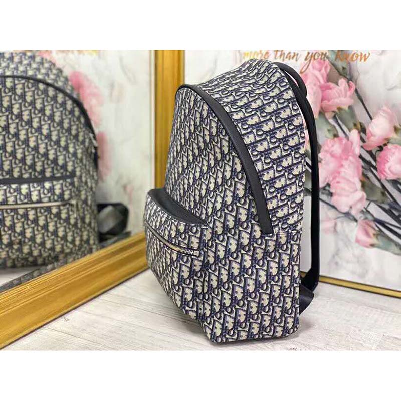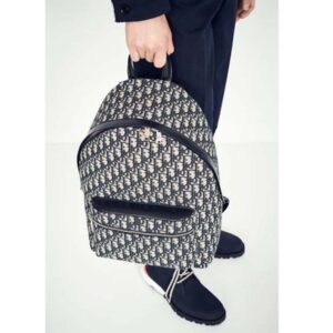 Backpack in Dior Oblique canvas and black grained calfskin with signature Dior detail.