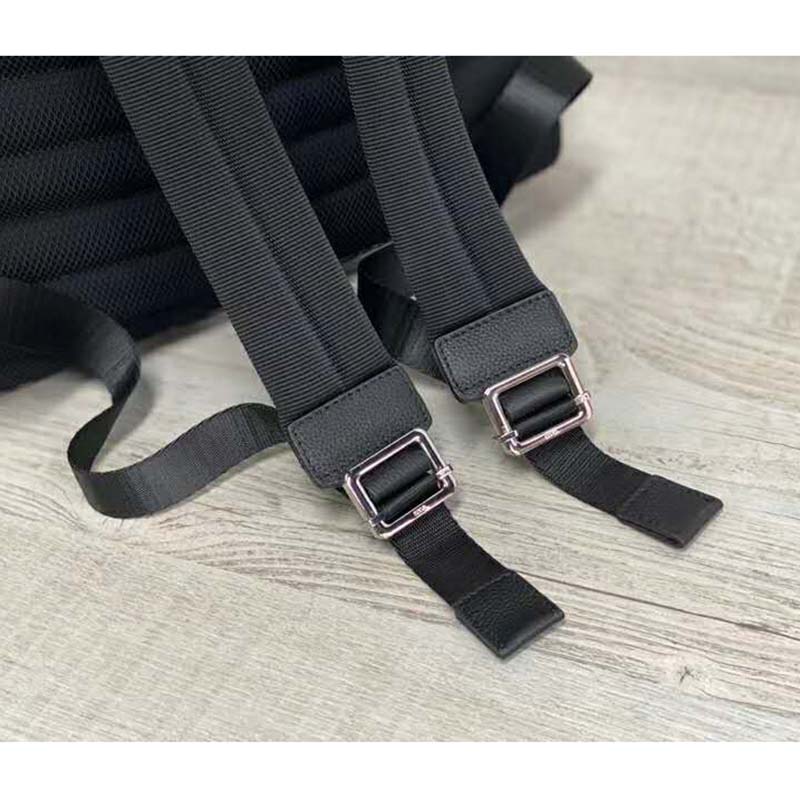 Adjustable quilted straps in black nylon with black calfskin trim