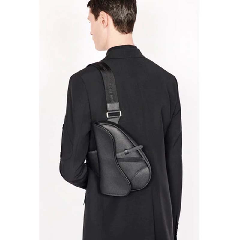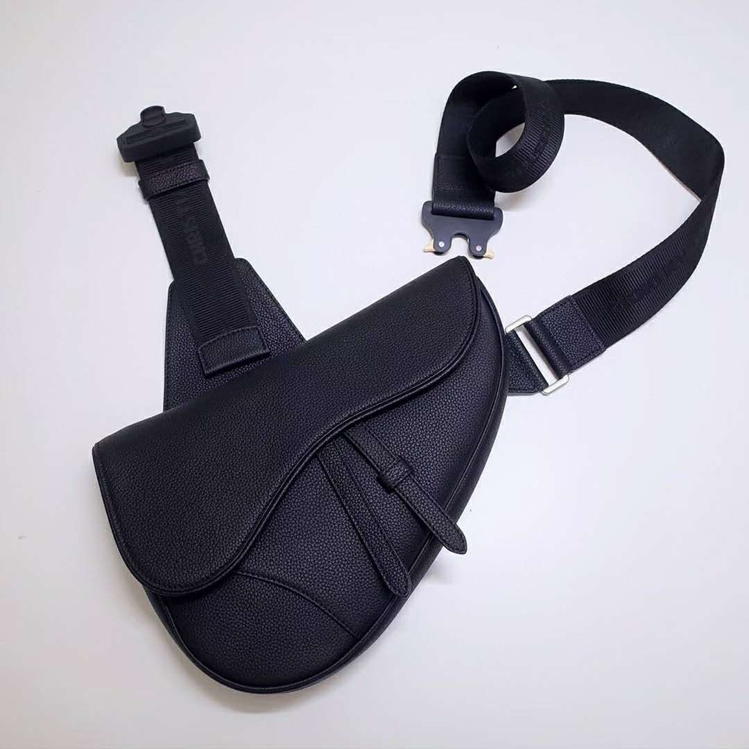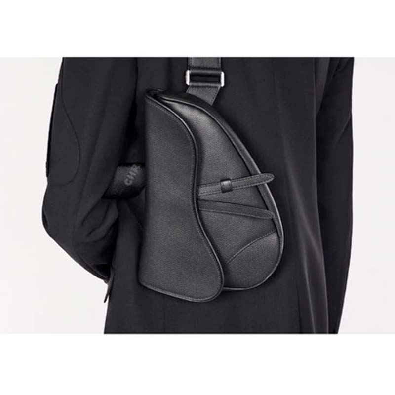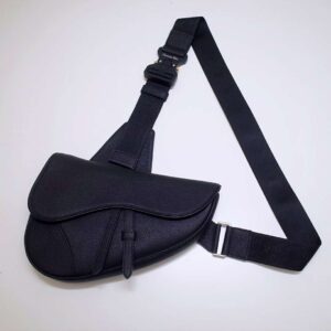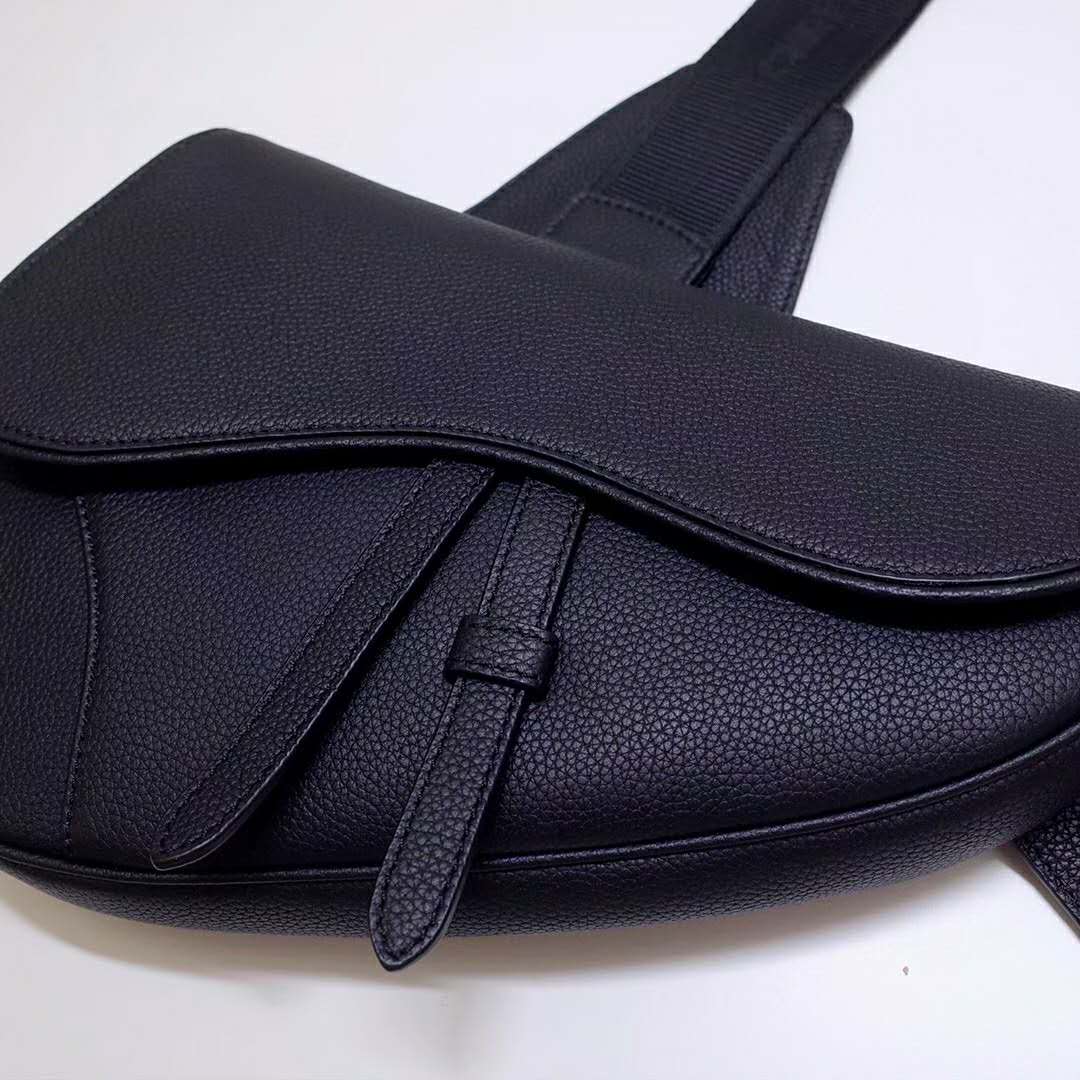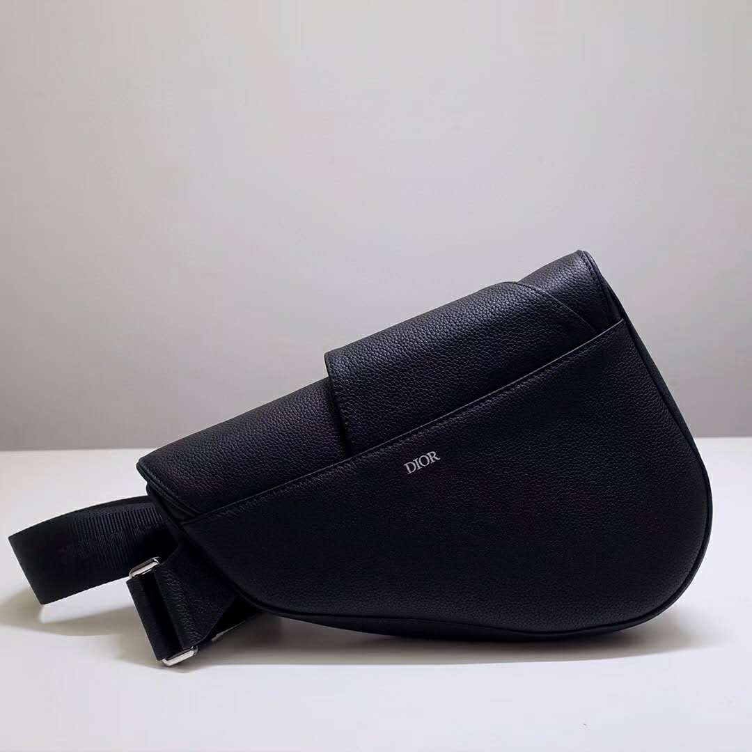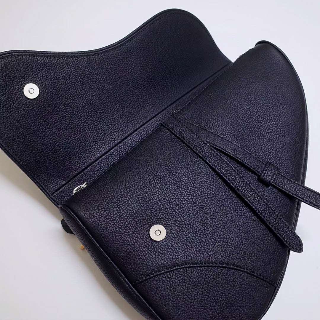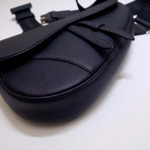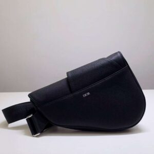 Black grained calfskin Saddle bag with Christian Dior buckle detail.