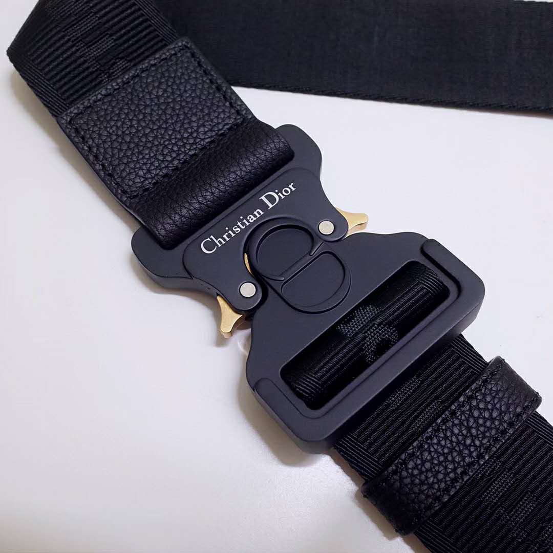Adjustable shoulder strap in black Christian Dior jacquard with black grained calfskin trim and CD buckle